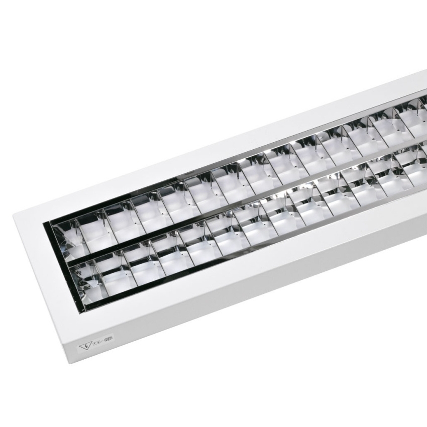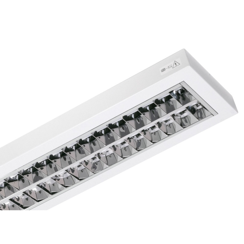 LED svítidlo TREVOS LUXOR LED 2.5FT 8000/840 DALI je navrženo pro efektivní a komfortní osvětlení kancelářských, vzdělávacích a obchodních prostor. Svítidlo poskytuje světelný tok 5330 lm při spotřebě 48,3 W a účinnosti 110 lm/W. Je vybaveno digitálně stmívatelným DALI driverem pro přesnou regulaci světelného výkonu. Optický systém se zrcadlovou parabolickou mřížkou eliminuje oslnění (UGR < 19) a zajišťuje rovnoměrné rozložení světla v souladu s normou EN 12464-1. Robustní ocelové tělo v bílé barvě (RAL 9003) zaručuje dlouhou životnost a elegantní vzhled.