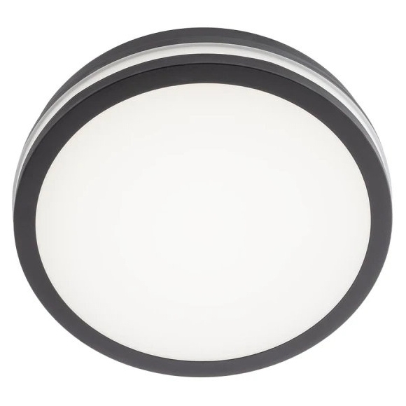 Exteriérové stropní LED svítidlo REDO ISOLA 90286 v tmavě šedém provedení s příkonem 24 W, světelným tokem 2060 lm, krytím IP54 a nastavitelnou teplotou chromatičnosti 3000/4000/6500 K.