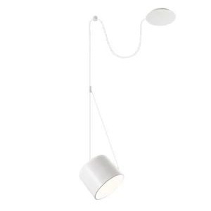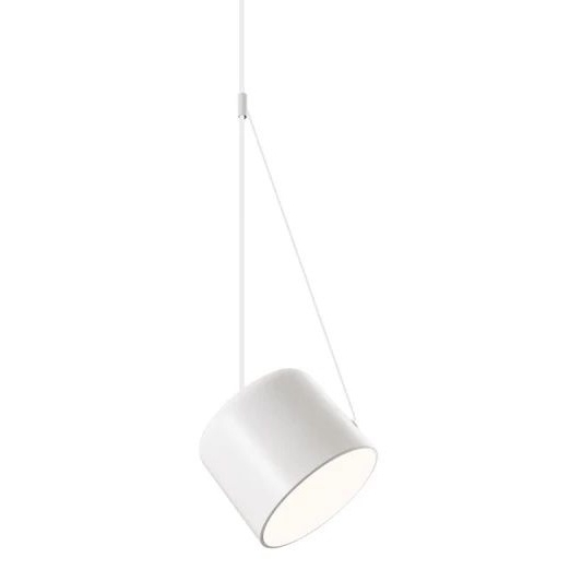 Moderní závěsné svítidlo s nastavitelným kovovým difuzorem v matné bílé barvě.