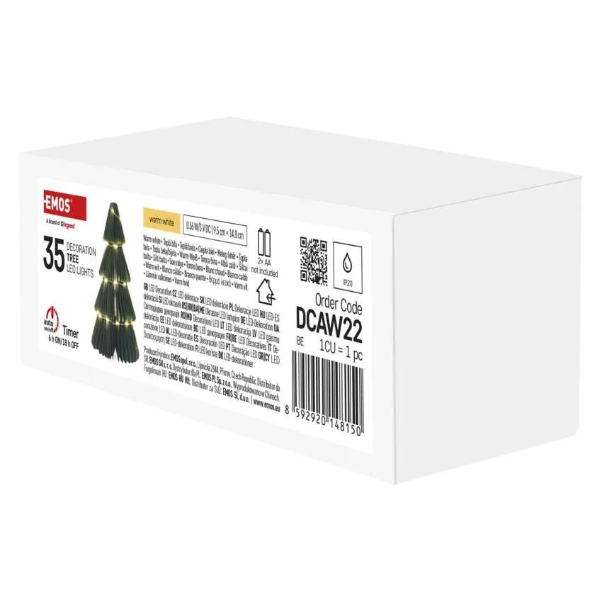 LED dekorace ve tvaru stromku z kvalitního skládaného papíru je určena výhradně pro vnitřní použití. Stromek je osazen 35 LED diodami s barvou světla teplá bílá a je napájen pomocí 2× AA baterií. Díky skládacímu provedení a magnetickému uchycení je instalace rychlá a jednoduchá a při skladování zabírá minimum místa. Integrovaný časovač pracuje v režimu 6 h zapnuto / 18 h vypnuto a zajišťuje automatický provoz bez nutnosti ručního ovládání.