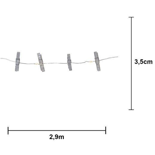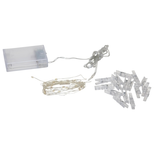 Světelný řetěz na baterie s 30 teple bílými LED diodami a 16 volnými průhlednými klipy. Ozdobte si párty nebo si pověste vánoční přání.