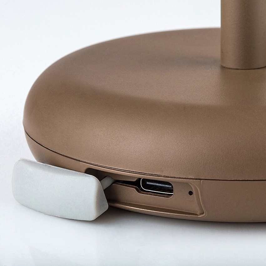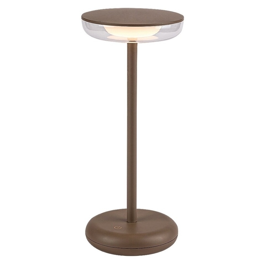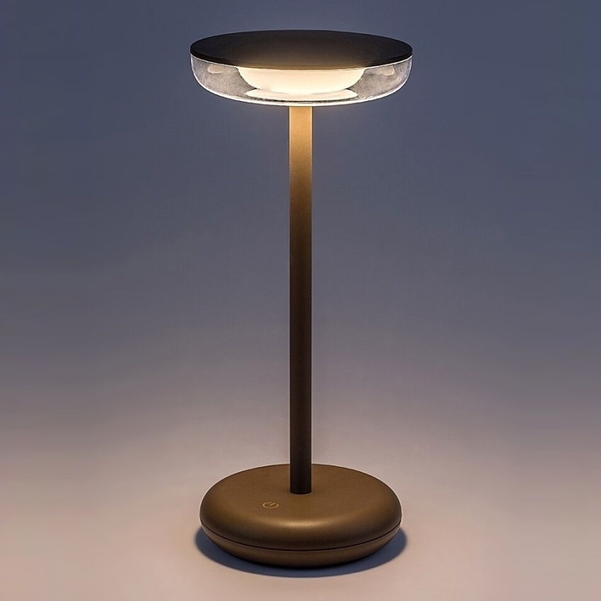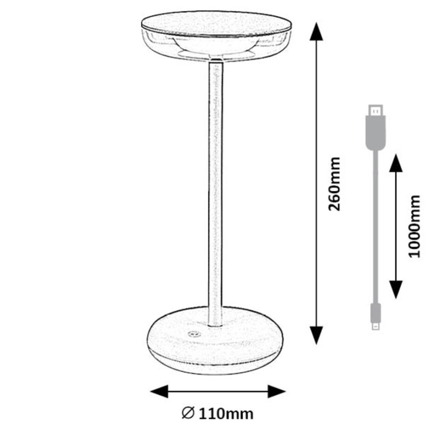 Venkovní svítidlo Rabalux Konin 77089 je vyrobeno z kovu v karamelové barvě a doplněno průhledným plastovým stínítkem. Jeho kompaktní tvar s kulatou základnou dodává prostoru vkusný vzhled, ideální pro terasy, zahrady nebo altány. Lampa je vybavena vestavěným LED světelným zdrojem s výkonem 6 W, který poskytuje světelný tok 60 lm se stínítkem (160 lm bez stínítka) a vyzařuje teplé bílé světlo o teplotě 3000 K. Díky dotykovému spínači lze svítidlo plynule stmívat a disponuje také paměťovou funkcí, která si pamatuje poslední nastavený jas. Lze ji snadno dobíjet pomocí USB kabelu — doba nabíjení je přibližně 4 hodiny a provozní doba po plném nabití činí 5–6 hodin. Lampa má krytí IP44, které zajišťuje odolnost vůči prachu a stříkající vodě, a baterii s kapacitou 1800 mAh. Rozměry svítidla jsou 260 × 110 mm a je určeno pro provoz v teplotním rozmezí –10 °C až +45 °C.