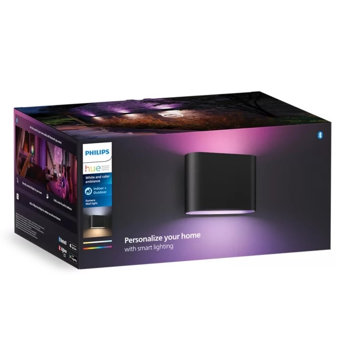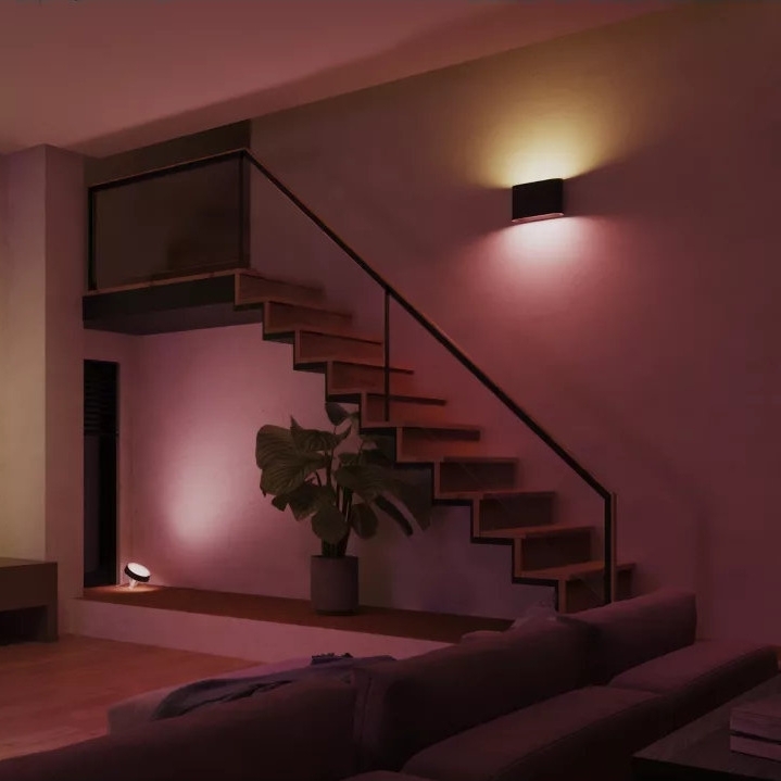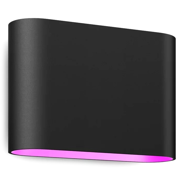 Nástěnné LED svítidlo je určeno pro použití v interiéru i exteriéru a je vybaveno integrovaným LED zdrojem. Nabízí barevné i bílé světlo (RGBW) s možností nastavení teploty chromatičnosti v rozsahu 2000–6500 K. Světelný tok dosahuje až 1 020 lm při 4 000 K, přičemž svítidlo obsahuje dva světelné zdroje. Ovládání je možné prostřednictvím aplikace Philips Hue, hlasových asistentů Amazon Alexa, Apple HomeKit a Google Assistant při použití kompatibilního systému. Svítidlo má krytí IP44, je napájeno ze sítě 220–240 V a je provedeno v černé barvě s kovovým tělem.