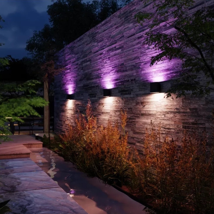 Nástěnné LED svítidlo pro interiérové i exteriérové použití s barevným i bílým světlem.