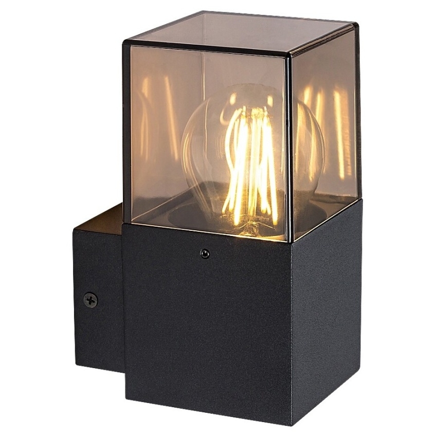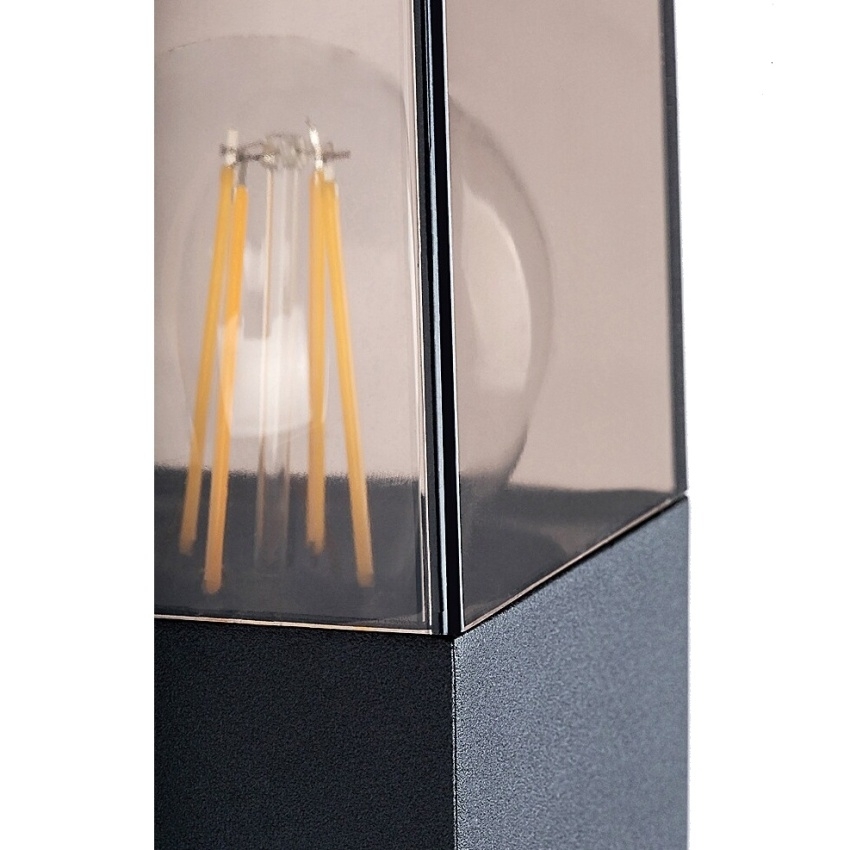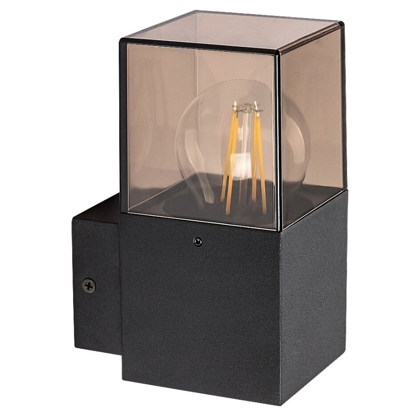 Moderní venkovní svítidlo Rabalux Loanda je stylovým doplňkem pro osvětlení terasy nebo fasády domu. Lampa z odolného hliníku v černé barvě má geometrický design s kostkovým stínítkem z kouřového plastu, které zajišťuje příjemně tlumené osvětlení. Díky průsvitnému provedení stínítka je světelný zdroj částečně viditelný, a proto se doporučuje použít dekorativní žárovku s netradičním tvarem. Svítidlo je určeno pro jednu žárovku s paticí E27 a maximálním příkonem 12 W. Krytí IP44 poskytuje spolehlivou ochranu proti vlhkosti a stříkající vodě, což zaručuje bezproblémové použití v exteriéru. Model se dodává bez světelného zdroje.