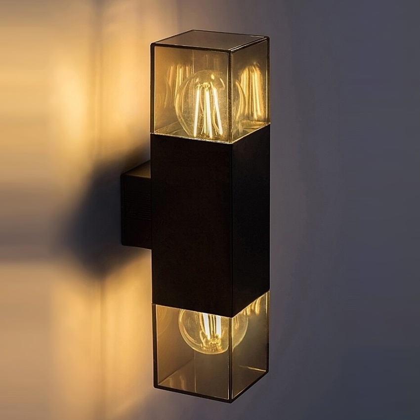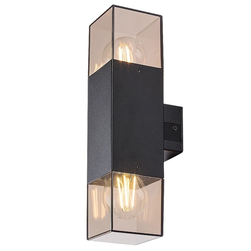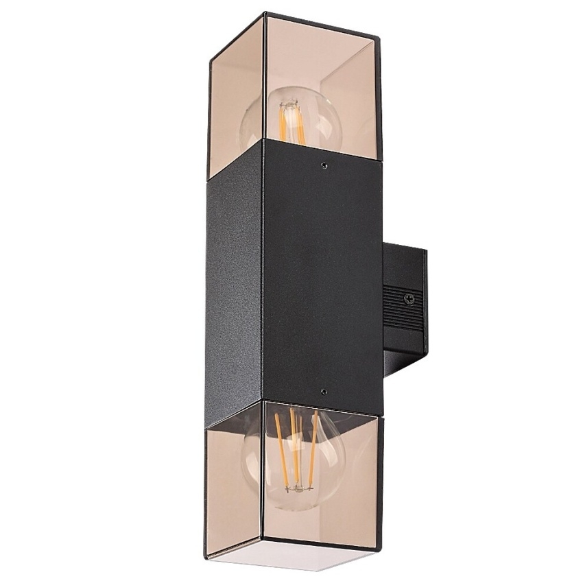 Venkovní svítidlo Rabalux Loanda v moderním stylu je elegantním a funkčním doplňkem každé terasy nebo fasády domu. Černé hliníkové tělo lampy doplňují dvě kouřová plastová stínítka ve tvaru kostky – jedno směřuje nahoru a druhé dolů, čímž vytváří efektní světelný rozptyl a zvýrazňuje architektonické prvky budovy. Díky průsvitnému provedení stínítka jsou světelné zdroje částečně viditelné, což umožňuje použít dekorativní žárovky s netradičním vzhledem. Svítidlo je určeno pro dvě žárovky s paticí E27, každou s maximálním příkonem 12 W. Krytí IP44 zajišťuje ochranu proti prachu a stříkající vodě, takže lampa je vhodná pro venkovní použití. Model se dodává bez světelných zdrojů.