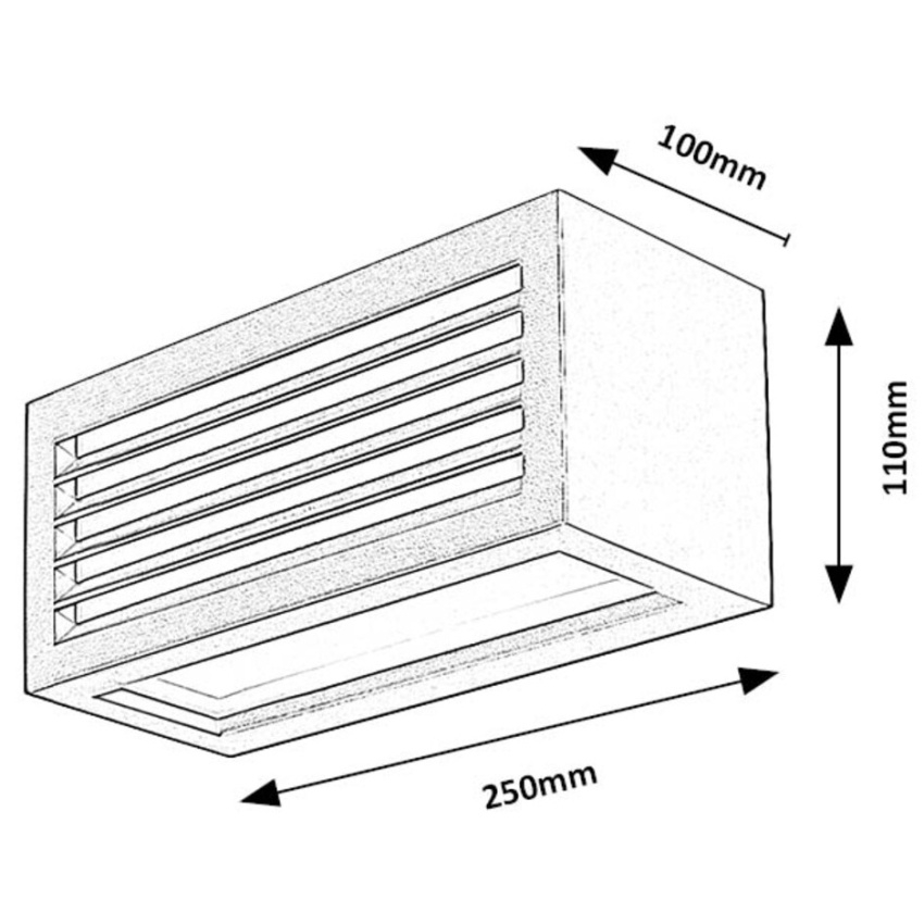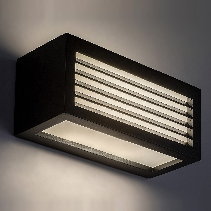 Venkovní svítidlo Rabalux Lublin 77100 je vyrobeno z odolného černého hliníku a doplněno bílým plastovým stínítkem. Díky promyšlené konstrukci ve tvaru obdélníku vyzařuje světlo v několika směrech – směrem dolů přes spodní stínítko i dopředu v jemných pruzích, což vytváří příjemný světelný efekt na stěně. Integrovaný LED světelný zdroj s výkonem 10 W poskytuje světelný tok 480 lm se stínítkem (1000 lm bez stínítka) a přirozené bílé světlo s teplotou 4000 K. LED modul má dlouhou životnost až 25 000 hodin a zajišťuje úsporný provoz bez nutnosti výměny žárovek. Svítidlo má krytí IP54, které ho chrání před prachem a stříkající vodou, a je tak ideální pro venkovní instalaci na terasy, fasády nebo vstupy do domu. Rozměry lampy jsou 250 × 110 × 100 mm a provozní teplotní rozsah je –20 °C až +40 °C.
