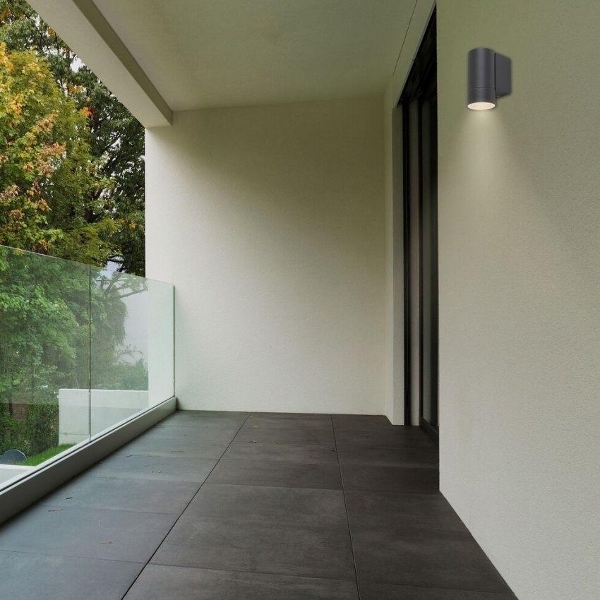 Venkovní nástěnné svítidlo Phoenix má minimalistický design. Malá nástěnná lampa vyrobená z kovu a skla se rozsvítí dolů, takže může být obzvláště praktická při cíleném osvětlení zámku dveří, zvonku nebo vypínače. Antracitové svítidlo je doplněno průhledným stínítkem. Tento model Phoenix lze používat pouze s jedním energeticky úsporným zdrojem světla do 10 W; lampa se dodává bez zdroje světla. Typ závitu: GU10. Válcové vnější svítidlo má průměr 65 mm, délku 123 mm a vzdálenost 100 mm od stěny. Čistá hmotnost lampy je 0,5 kg. Její krytí IP54 zaručuje, že toto venkovní svítidlo je chráněno před jakýmkoli škodlivým prachem a stříkající vodou z jakéhokoli směru.