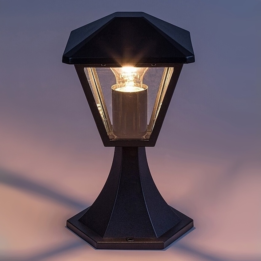 Venkovní stojací svítidlo Paravento v klasickém stylu je elegantním doplňkem zahrady, dvora nebo chodníku. Černé hliníkové tělo doplňuje průhledné skleněné stínítko s obdélníkovým tvarem, které je shora zakončeno kloboukovým víkem. Stabilní základna zajišťuje pevné umístění lampy i na nerovném povrchu. Svítidlo je určeno pro jednu žárovku s paticí E27 o maximálním příkonu 40 W (zdroj není součástí balení). Díky krytí IP44 je Paravento chráněno proti vniknutí malých částic a stříkající vodě, takže je ideální pro venkovní použití. Díky svému decentnímu vzhledu se hodí k osvětlení cestiček, záhonů nebo okrasných prvků zahrady. Rozměry lampy: výška 290 mm, šířka 160 mm.