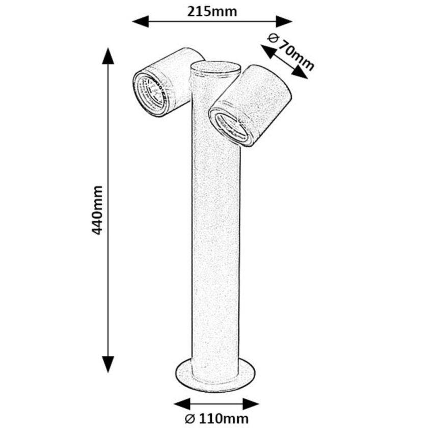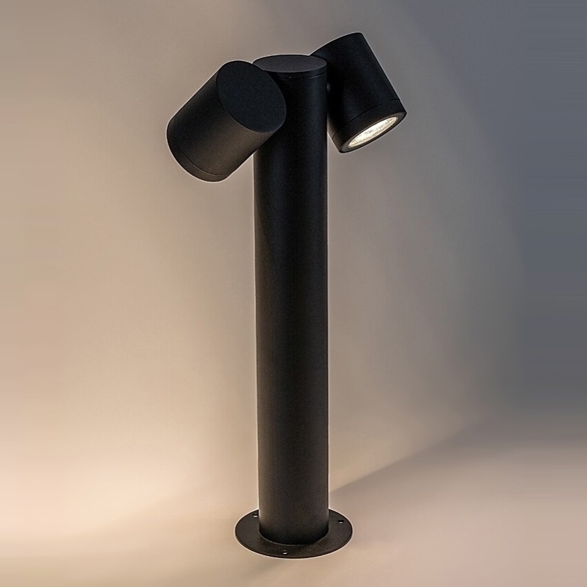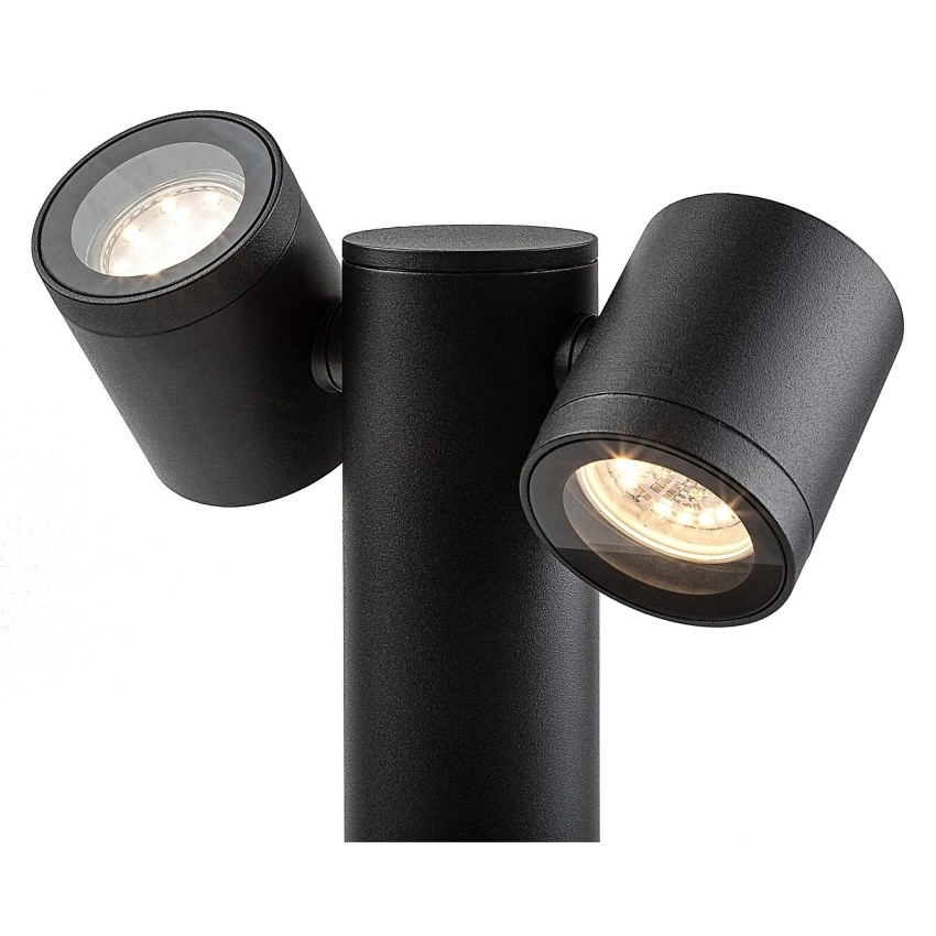 Venkovní stojací svítidlo Rabalux Enol se dvěma světelnými zdroji představuje spojení moderního designu, funkčnosti a kvalitního zpracování. Černé tělo z odolného hliníku doplňují dvě otočné válcové hlavice s průhlednými skleněnými stínítky, které umožňují nasměrovat světlo přesně tam, kde je potřeba. Díky tomu je svítidlo ideální pro osvětlení zahradních cestiček, teras, schodišť nebo příjezdových cest. Svítidlo je určeno pro dvě žárovky s paticí GU10 a maximálním příkonem 35 W každá. Krytí IP44 zaručuje odolnost proti prachu a stříkající vodě, takže je vhodné pro venkovní použití i za horších povětrnostních podmínek. Model se dodává bez světelných zdrojů.