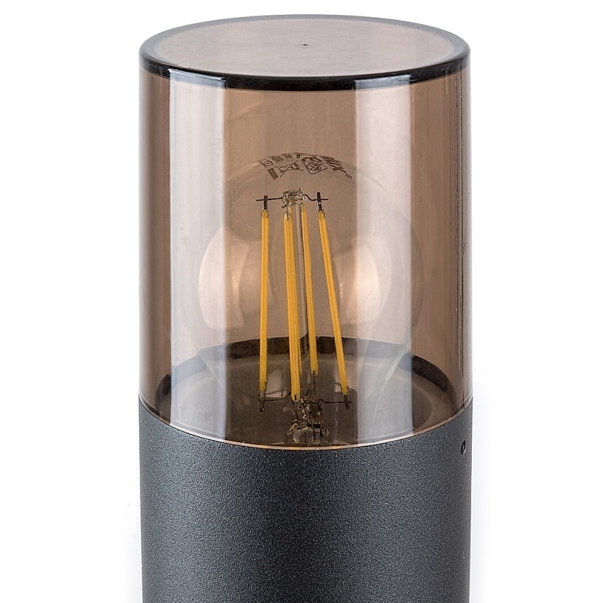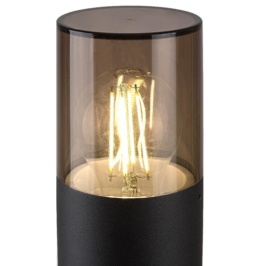 Venkovní stojací svítidlo Teplice v moderním stylu je ideální volbou pro osvětlení zahrady, chodníku nebo okolí domu. Matné černé hliníkové tělo doplňuje kouřově tónované plastové stínítko, které rovnoměrně rozptyluje světlo a vytváří příjemnou atmosféru v exteriéru. Stabilní válcová základna s diskovým podstavcem zajišťuje pevné a bezpečné umístění lampy. Svítidlo je určeno pro jednu žárovku s paticí E27 a maximálním příkonem 12 W (zdroj není součástí balení). Díky stupni krytí IP44 je odolné vůči prachu a stříkající vodě, což zaručuje spolehlivý provoz i při nepříznivém počasí. Rozměry lampy: výška 600 mm, průměr 80 mm.