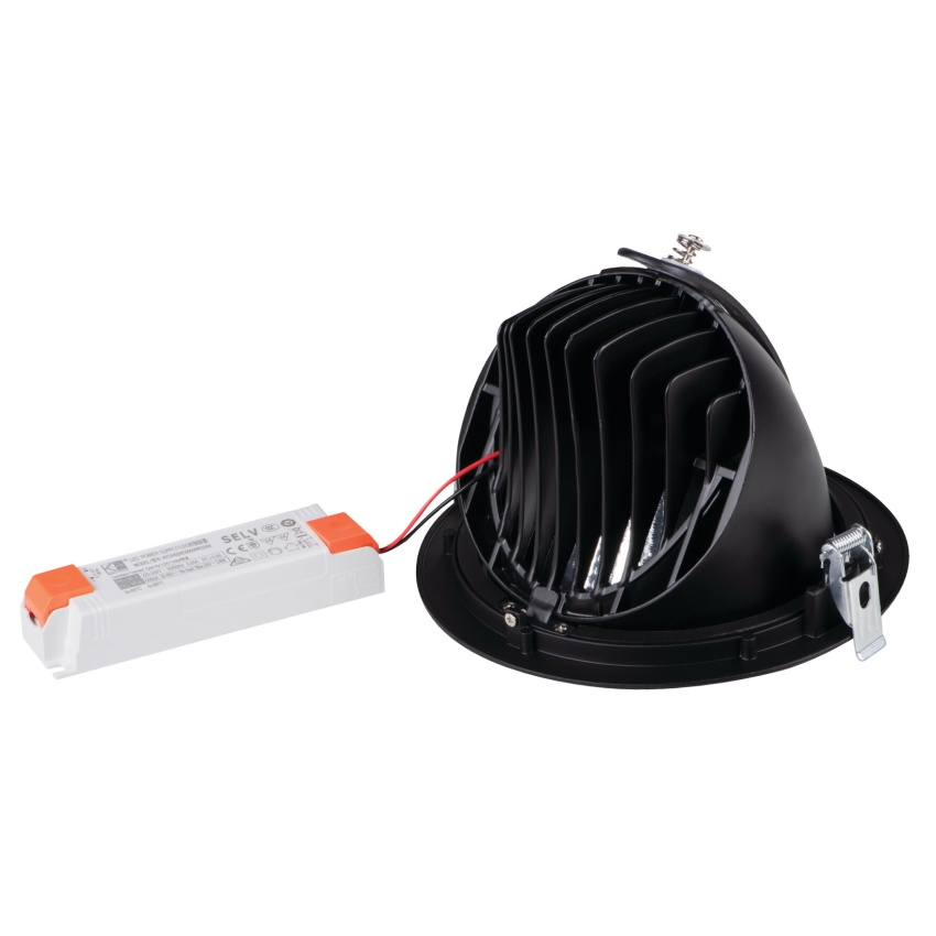 Svítidlo Kanlux HIMA LED 23W-NW je výkonné vestavné downlight svítidlo určené pro vnitřní prostory. Díky světelné účinnosti přes 110 lm/W a vysokému indexu podání barev Ra 90 poskytuje kvalitní a přirozené osvětlení, které věrně zobrazuje barvy. Umožňuje nastavení ve dvou osách, což zajišťuje přesné nasměrování světla podle potřeby. Svítidlo je ideální pro osvětlení obchodních prostor, butiků nebo výstavních míst, kde je nutné zdůraznit konkrétní zóny či produkty. Elegantní černé provedení a kvalitní hliníkové tělo zaručují dlouhou životnost a spolehlivý provoz.
