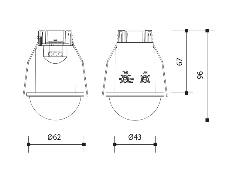 Kompaktní přítomnostní senzor SENSOR P je určený pro vestavnou montáž do stropu a slouží k automatickému spínání osvětlení na základě detekce pohybu i přítomnosti osob v prostoru. Nabízí detekční úhel 360° a dosah 10 m, přičemž nastavení citlivosti přítomnostní detekce je 3 m. Díky krytí IP54 je vhodný nejen do interiérů, ale i do prostor se zvýšenou vlhkostí. Umožňuje nastavení soumraku 3–2000 lx a zpoždění vypnutí 10 s až 30 min, napájení je 230 V AC 50 Hz a příkon ve standby je 0,50 W. Maximální zátěž senzoru je LED max. 600 W, žárovka max. 1200 W a zářivka max. 600 W; přívodní proud je 6 A a provozní teplota -20 až 40 °C. Rozměry jsou 62 × 62 × 96 mm, barva černá, materiál základny i krytu plast; typ kabelu je kabel zakončený svorkovnicí 3*2,5mm2. Katalogové číslo: PN71000025, EAN: 8595216633194.