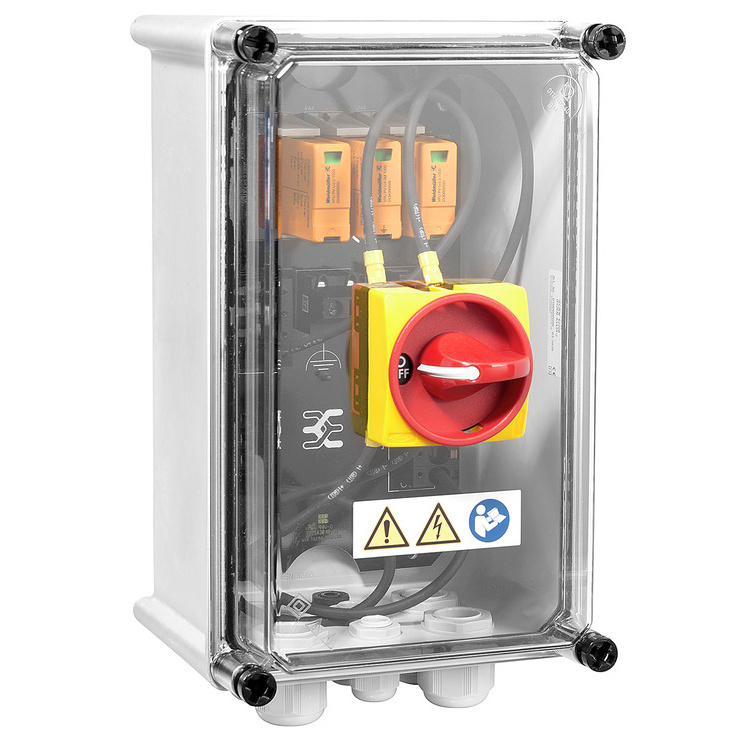 Kombinovaná skříň, 1000 V, 1 MPPT, 3 vstupy / 3 výstupy na MPP, Přepěťová ochrana I / II, Spínací odpojovač, Kabelová průchodka