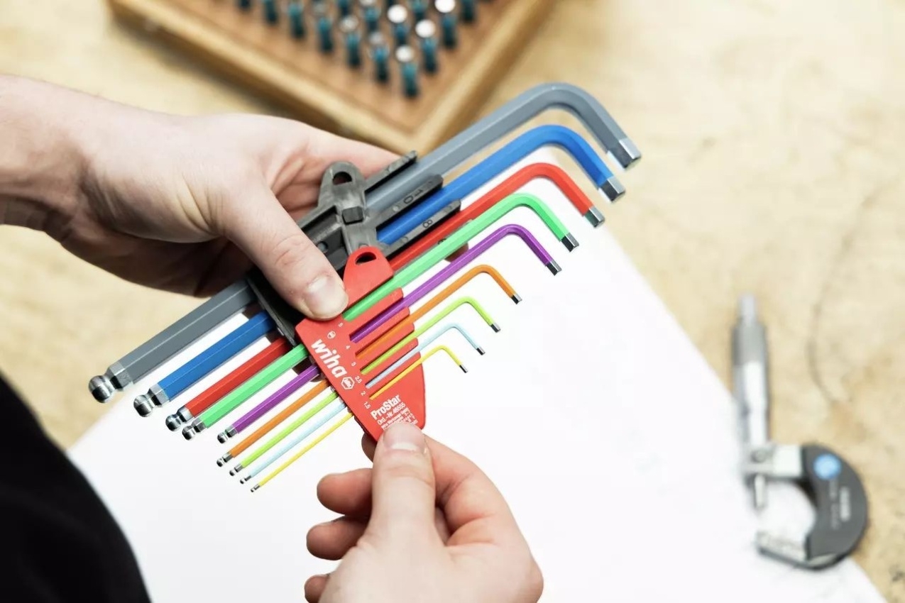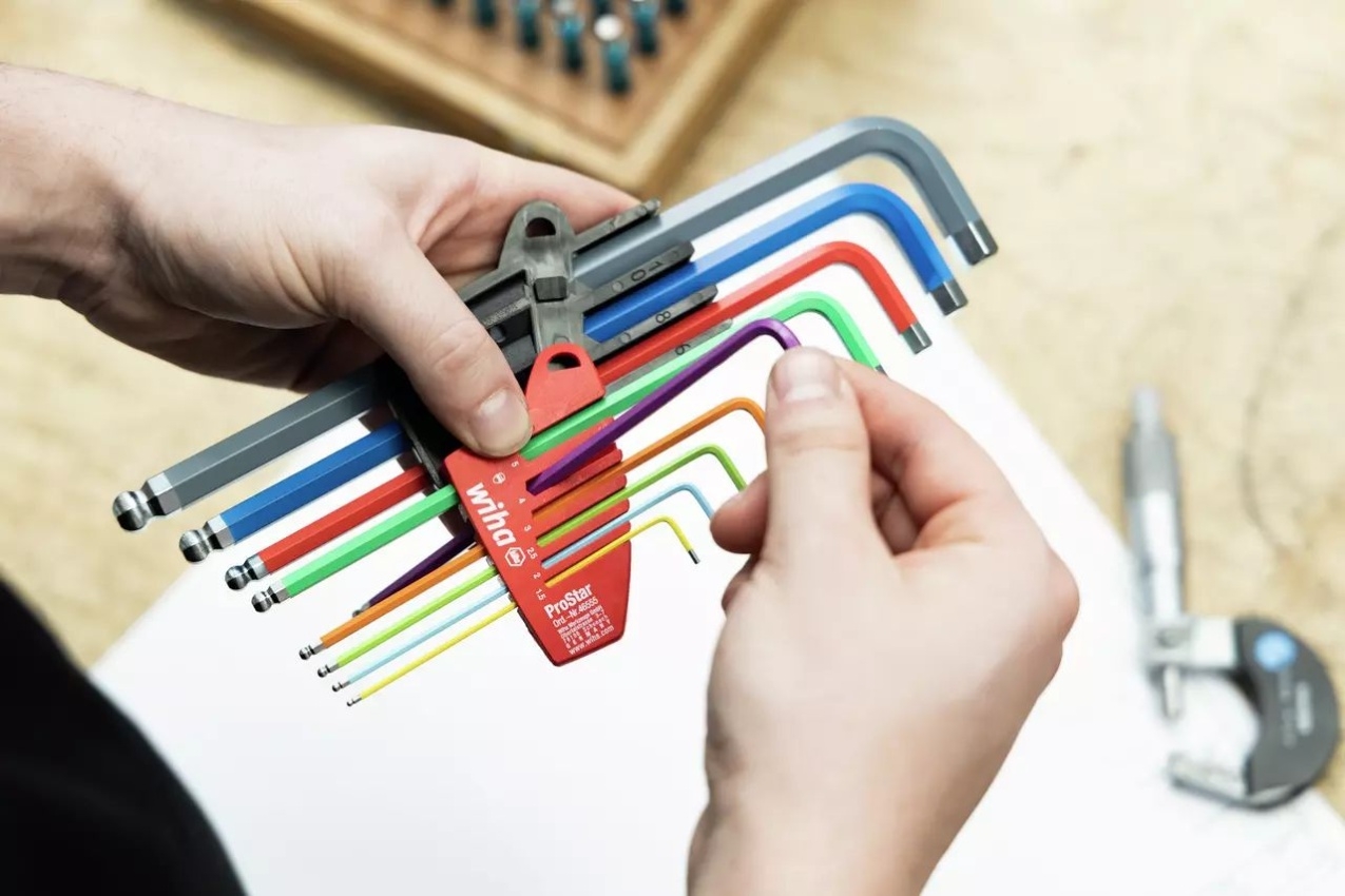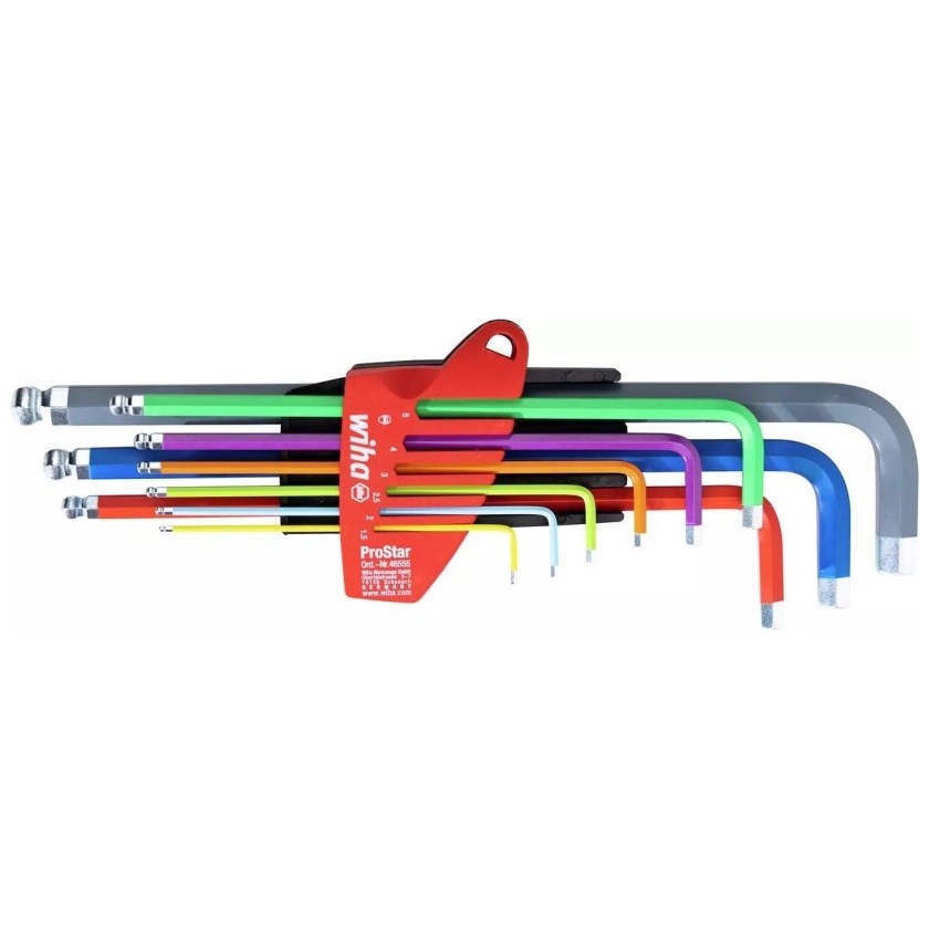 Sada imbusových klíčů Wiha ProStar nabízí devět šestihranných klíčů se svítivým povrchem a praktickým držákem pro rychlé a bezpečné vyjímání.