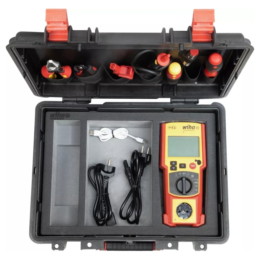 Tester přístrojů Wiha podporuje zkoušku přístrojů pomocí aplikace Sparkify. Založení nového zkoušeného přístroje probíhá pomocí aplikace, přičemž integrovaná technologie AI pro rozpoznávání obrazu přístroj automaticky zaregistruje a pomocí snímku typového štítku zaznamená informace o přístroji. Samotné měření je řízeno otočným kolečkem na přístroji a výsledky měření jsou přenášeny bezkontaktně prostřednictvím NFC do aplikace Sparkify a přímo propojeny se zkoušeným přístrojem. Tester přístrojů Wiha má kompaktní konstrukci pro použití také ve stísněných prostorách. Díky možnosti provozu v síti nebo na baterie nedochází ke ztrátě výsledků měření. Tester přístrojů značky Wiha pokrývá přístroje třídy ochrany I–II, prodlužovací kabely, proudové chrániče nebo třífázová vedení. Při mobilním použití nabízí robustní L-kufr s pěnovou vložkou ochranu při přepravě a další ukládací prostor pro uspořádané uložení volitelných adaptérů, zkušebních plaket, plaket s čárovými kódy a příslušenství.