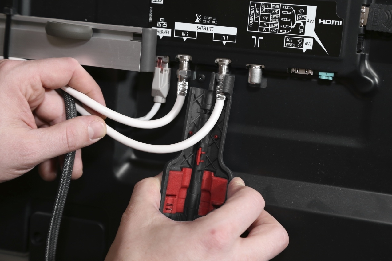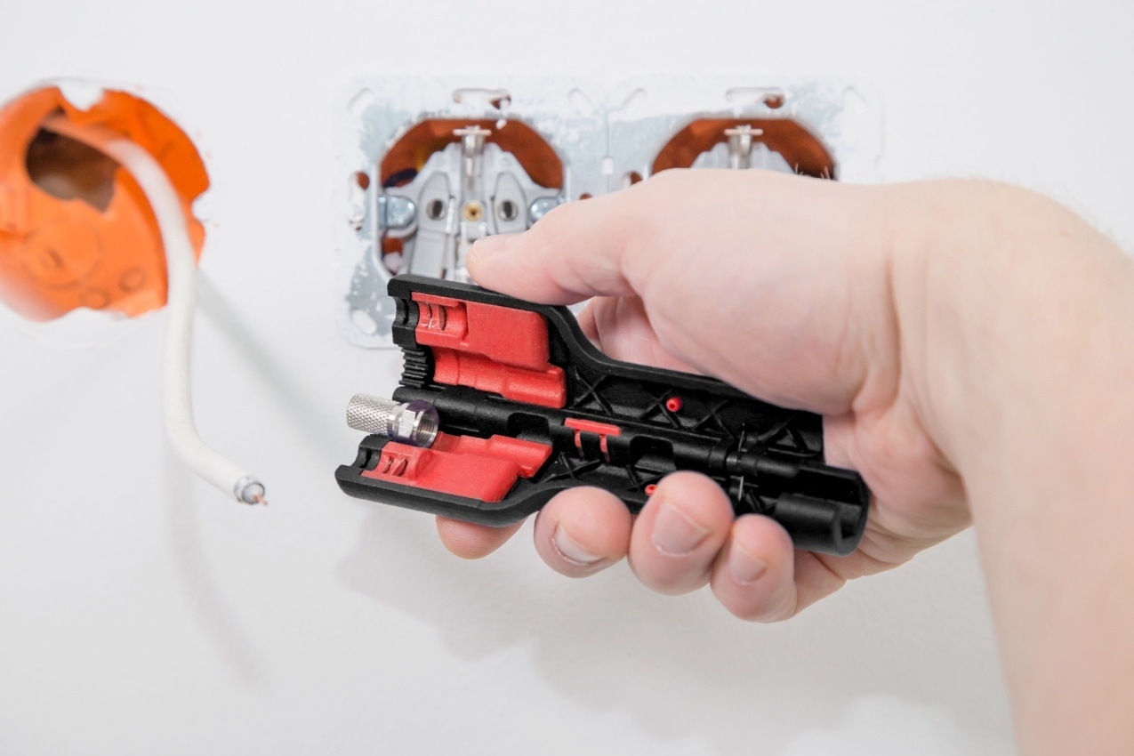 Šetří místo: Kompaktní nástroj se všemi funkcemi pro zpracování a montáž koaxiálních kabelů s konektorem F.