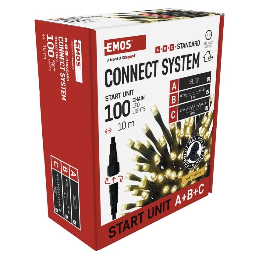 EMOS Základní sada pro spojovací řetězy Standard, 10 m, venkovní, teplá bílá, časovač