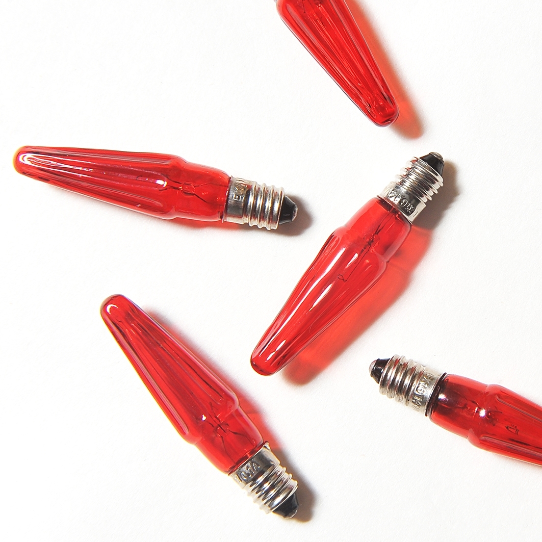 Tradiční skleněná žárovka ruční výroby Balení obsahuje 100 ks žárovek červené barvy Menší množství žárovek je možno zakoupit na blistrech po 4 ks