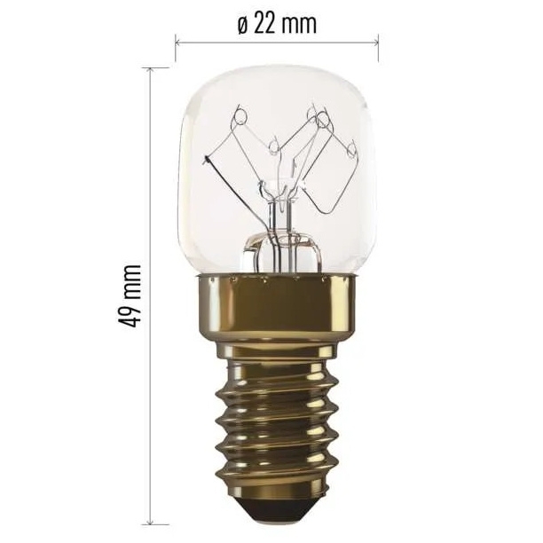 Žárovka do pečicí trouby T22 s paticí E14 je určena pro spolehlivé osvětlení v prostředí s vysokými teplotami.