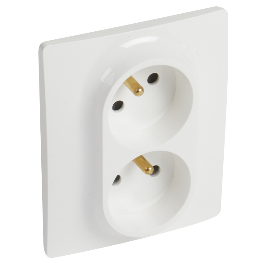 Zásuvka 2x2P + T bez dětské ochrany, šroubová v bílé barvě. 16A - 250