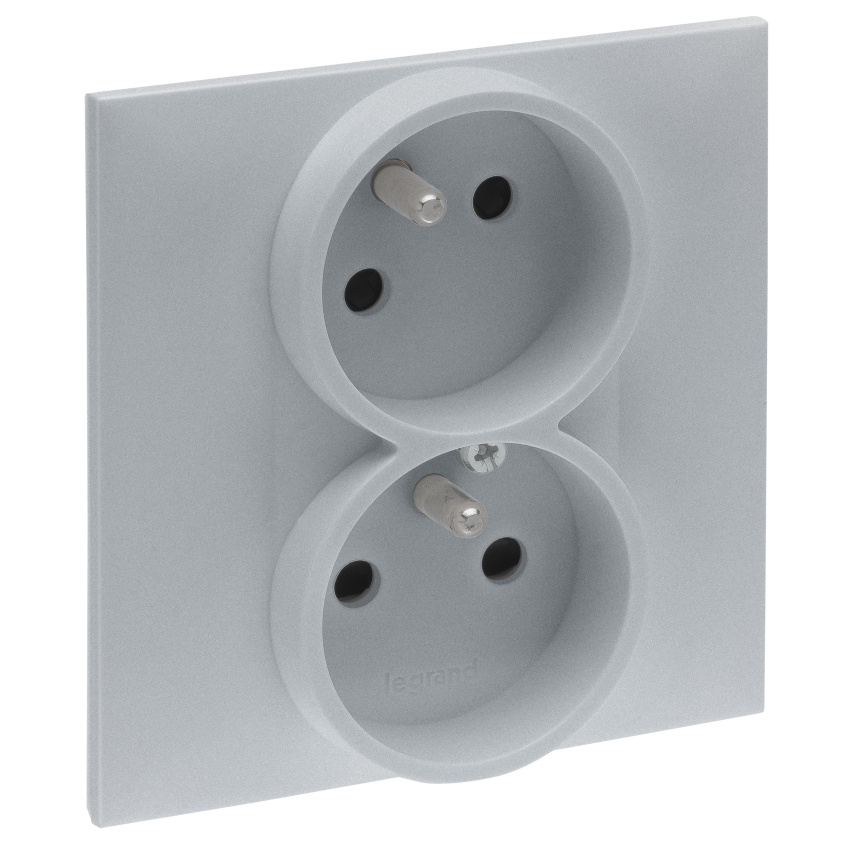 Zásuvka dvojnásobná s natočenou dutinkou, 2x2P+T hliník
