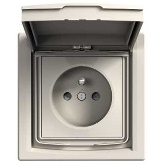 Asfora - single socket outlet with pin earth - 16A lid, shutters IP44 cream