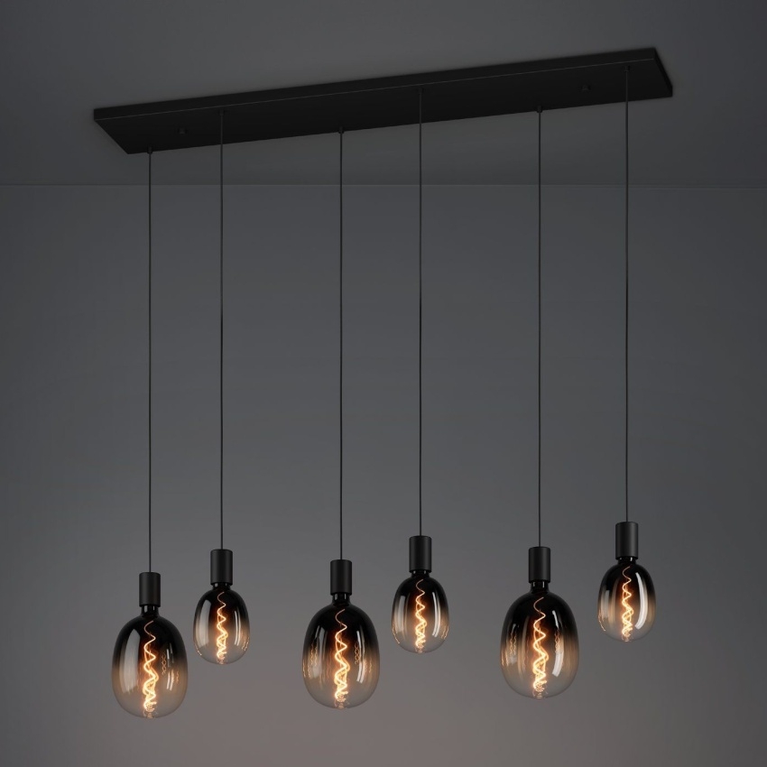 Závěsné svítidlo HUEBRO (390268) je určeno pro vnitřní prostory a patří do tématu Crystal + Design. Tělo svítidla je vyrobeno z oceli v černé barvě a je doplněno černým textilním kabelem. Rozměry svítidla jsou 1500 mm na výšku, 1300 mm na délku a 220 mm na šířku. Čistá hmotnost výrobku je 3.9 kg.