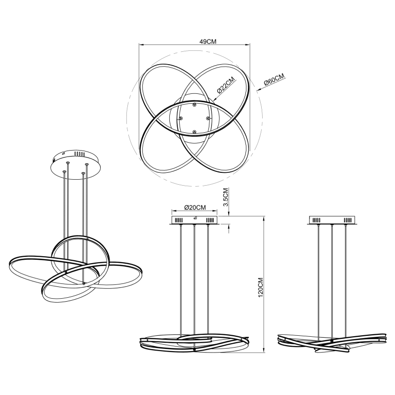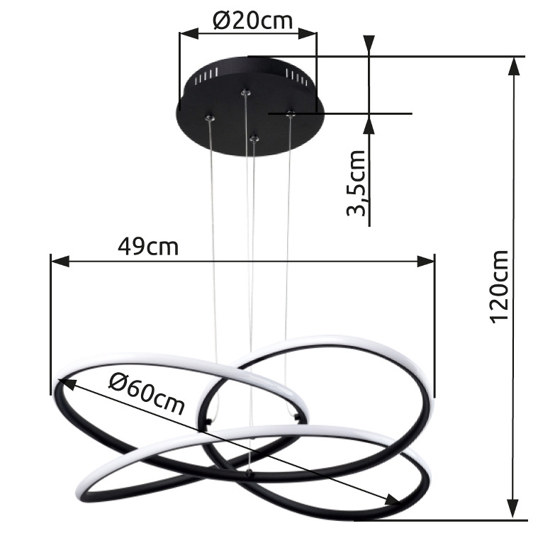 Závěsné svítidlo GLOBO z rodiny PANDA je vyrobené z černého kovu a má bílé plastové stínidlo. Svítidlo má průměr 60 cm a celkovou výšku 120 cm. Je osazené integrovaným LED modulem 30 W (230 V) se světelným tokem 1370 lm a teplotou světla 3000 K. Krytí svítidla je IP20.