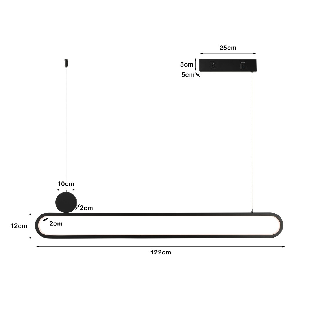 Immax NEO LITE OVALE Smart (katalogové číslo 07231L) je závěsné LED svítidlo v černé barvě s integrovaným LED modulem. Má příkon 50 W, světelný tok 3520 lm a umožňuje změnu odstínu bílé barvy světla v rozsahu 3000–6000 K (CCT), zároveň je stmívatelné. Ovládání probíhá přes protokol Tuya WiFi (2,4 GHz Wi-Fi 802.11 b/g/n) v aplikaci Immax NEO PRO, k dispozici je dálkové ovládání a podpora BEACON (bezdrátové ovládání pomocí Bluetooth protokolu). Svítidlo je z materiálů kov a plast, rozměr je uveden 122 cm, délka závěsu je max. 150 cm, krytí IP20, doba svícení 50 000 hodin a CRI je >80Ra. V balení je LED svítidlo, dálkový ovladač a uživatelský návod.