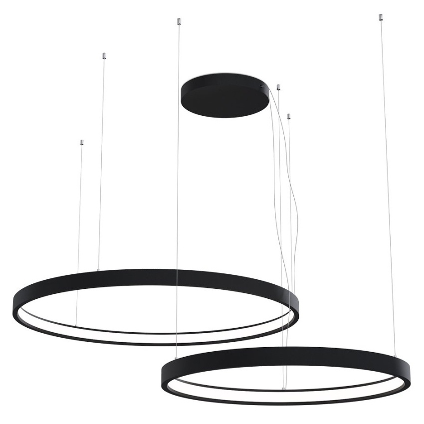 Designové závěsné svítidlo LED2 CIRO SET 2 P-Z v elegantním černém provedení představuje moderní kombinaci minimalistického designu a vysokého výkonu. Je vyrobeno z kvalitního hliníku a plastu, doplněného o opálový difuzor, který zajišťuje rovnoměrné a neoslňující osvětlení. Svítidlo je ideální pro reprezentativní prostory, jídelny, kanceláře, zasedací místnosti či moderní rezidenční interiéry, kde vynikne jeho precizní zpracování a výrazný vizuální efekt.