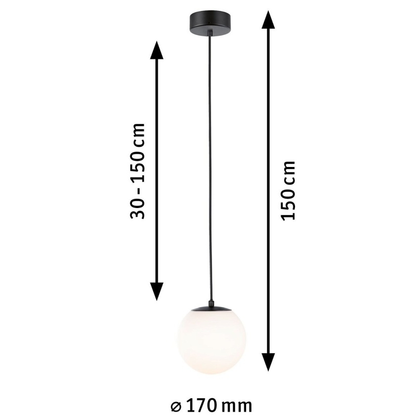 PAULMANN Gove je závěsné svítidlo s integrovaným LED zdrojem o výkonu 9 W a světelném toku 900 lm. Teplota barvy světla je 3000 K, stupeň krytí IP44 a třída ochrany II. Svítidlo není stmívatelné, životnost je 30 000 h a počet světelných zdrojů 1. Výška je 1500 mm, průměr stínidla 170 mm, délka závěsu 300 mm, materiál kov / sklo a barva matná bílá / černá mat. Zdroj světla je součástí balení.