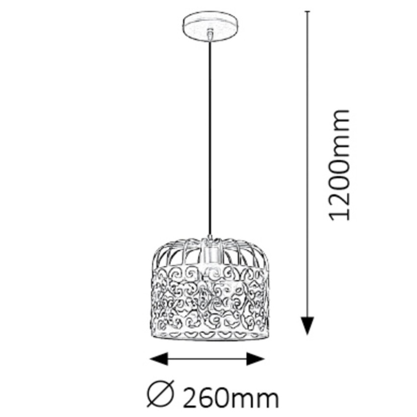 Závěsné svítidlo Rabalux Alessandra 2161 zaujme elegantním vintage designem s jemně romantickým nádechem. Kombinuje kovové provedení v matně bílé barvě s čistými liniemi, díky čemuž se skvěle hodí do jídelny, kuchyně či obývacího pokoje. Svítidlo je určeno pro jednu žárovku s paticí E27 a maximálním výkonem 60 W. Výška zavěšení 1200 mm umožňuje přizpůsobení umístění nad stůl či centrální část místnosti. Model je napájen napětím 230 V, 50 Hz a dodává se bez světelného zdroje.