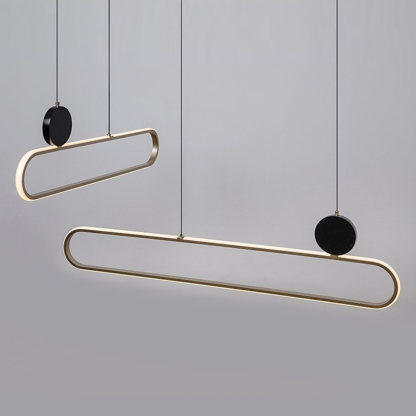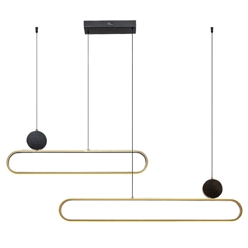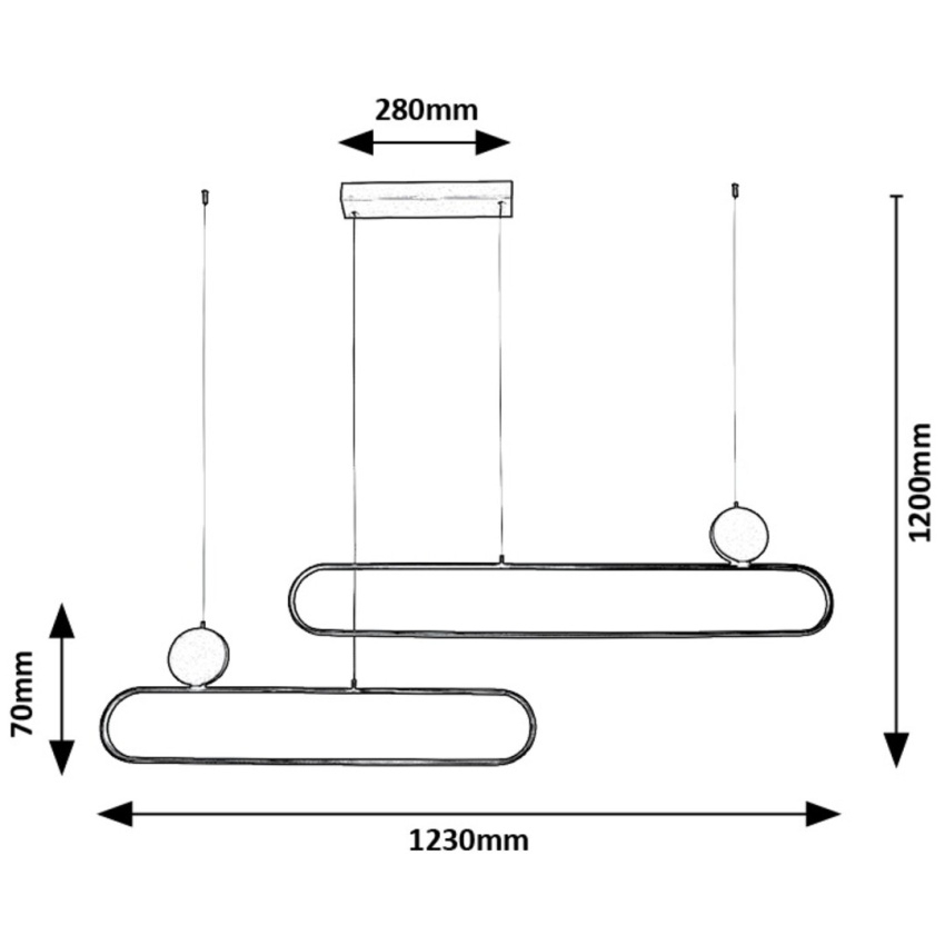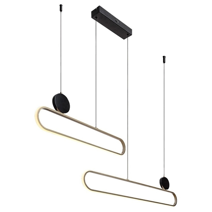 Moderní závěsné svítidlo Rabalux Circado 72268 vyniká svým neobvyklým designem a elegantní kombinací černé a zlaté barvy. Je tvořeno dvěma zaoblenými vodorovnými prvky, které jsou umístěny pod sebou a mírně posunuty, čímž vytvářejí dynamický vizuální efekt. Kovová konstrukce doplněná bílým silikonovým stínítkem zajišťuje rovnoměrné rozptýlení teplého světla a příjemnou atmosféru v interiéru. Vestavěný LED světelný zdroj o výkonu 48 W poskytuje světelný tok 2550 lm (3360 lm bez stínítka) a vyzařuje teplé bílé světlo o teplotě 3000 K, které působí útulně a harmonicky. Svítidlo Circado se ideálně hodí do moderně laděných obývacích pokojů, jídelen či ložnic a svým tvarem dodá prostoru výrazný designový prvek.