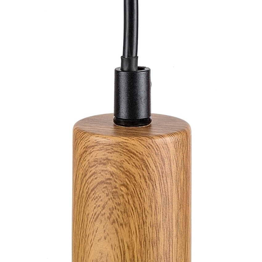 Stylové závěsné svítidlo Dollien v industriálním designu kombinuje matně černý kov s dekorem bukového dřeva, čímž vytváří moderní a přirozený vzhled. Díky svému jednoduchému, ale elegantnímu provedení je ideální pro osvětlení obývacího pokoje, jídelny nebo kuchyně. Kovová objímka v černé barvě doplněná o detail v barvě buku vynikne nejlépe s designovou LED filamentovou žárovkou. Svítidlo je vybaveno paticí E27 a je určeno pro jeden světelný zdroj s maximálním příkonem 60 W (žárovka není součástí balení). Délku závěsu lze snadno upravit podle potřeby.