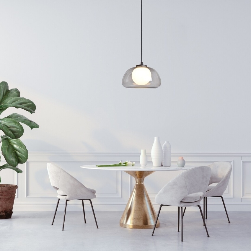 Stylové závěsné svítidlo Rabalux Elowen 72275 zaujme moderním designem a elegantní kombinací černého kovu s kouřově tónovaným sklem. Vnější skleněné stínidlo s jemně zakřivenými liniemi doplňuje vnitřní bílá koule, která rozptyluje světlo do prostoru a vytváří příjemnou atmosféru. Díky svému univerzálnímu vzhledu se svítidlo hodí do obývacího pokoje, jídelny, kuchyně i ložnice. Je určeno pro jednu žárovku s paticí G9 o maximálním výkonu 5 W a je dodáváno bez světelného zdroje.
