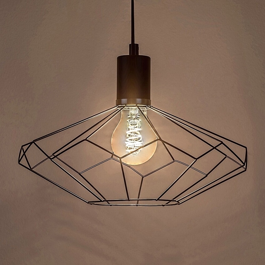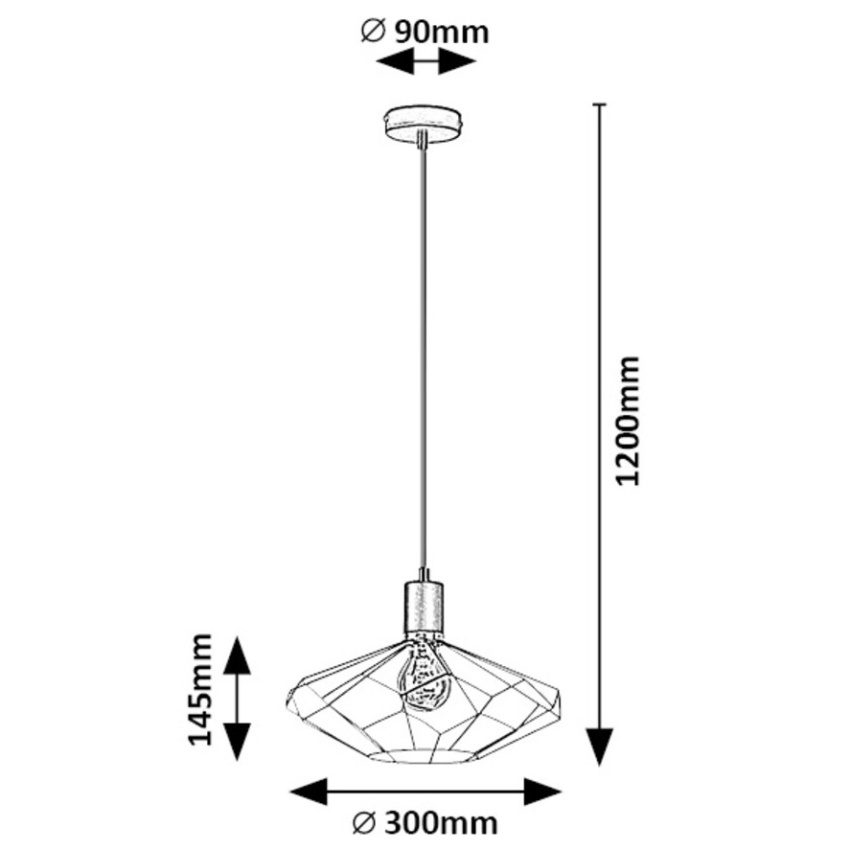 Stylové závěsné svítidlo Rabalux Fran 72241 ve vintage designu kombinuje jednoduchost s industriálním charakterem. Matně černé kovové provedení doplňuje drátěné stínítko ve tvaru diamantu, které umožňuje vyniknout samotnému světelnému zdroji. Díky tomu lze snadno dosáhnout dekorativního efektu při použití designové žárovky. Svítidlo se skvěle hodí do obývacího pokoje, jídelny nebo ložnice, kde vytváří útulnou atmosféru s retro nádechem. Určeno pro jednu žárovku s paticí E27 a maximálním příkonem 40 W (zdroj není součástí balení).