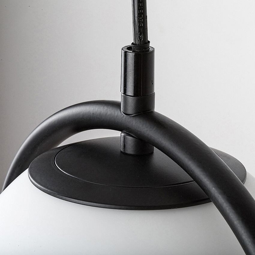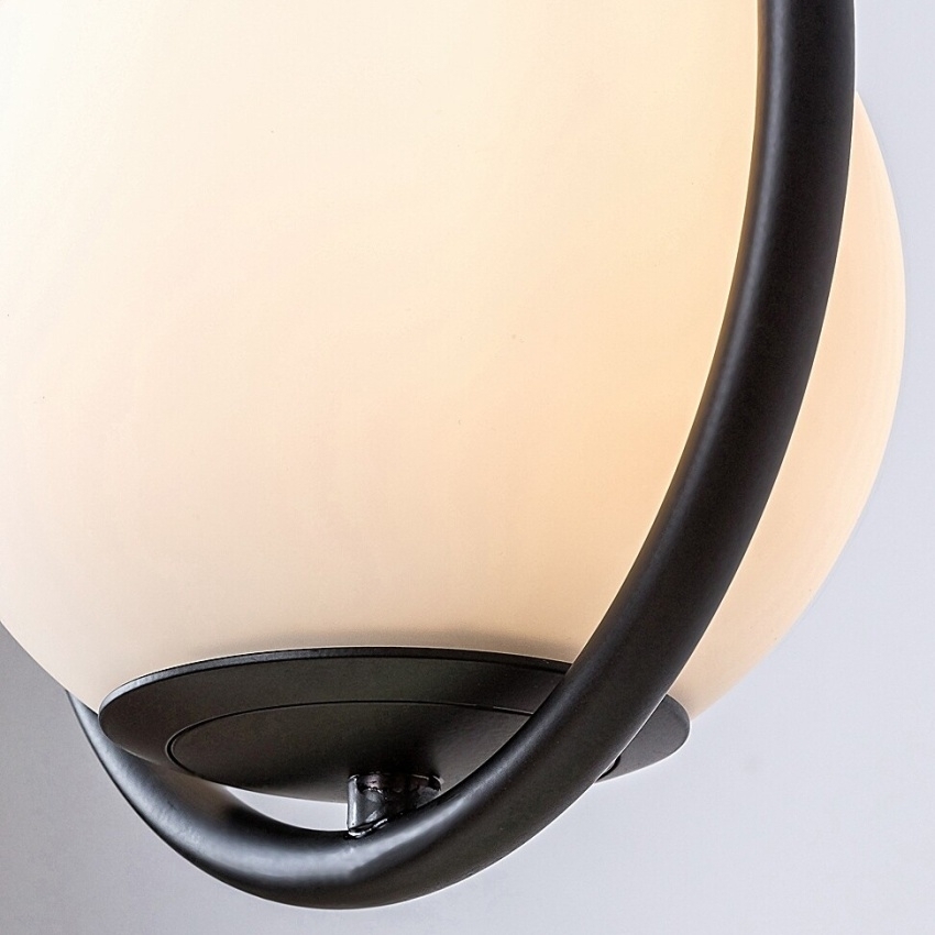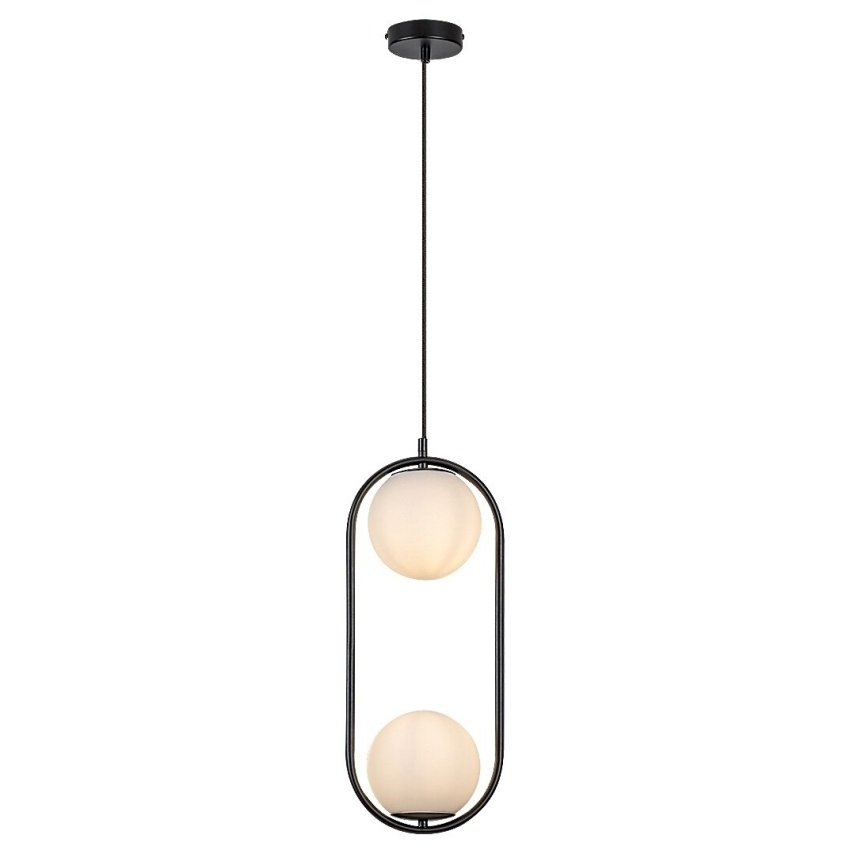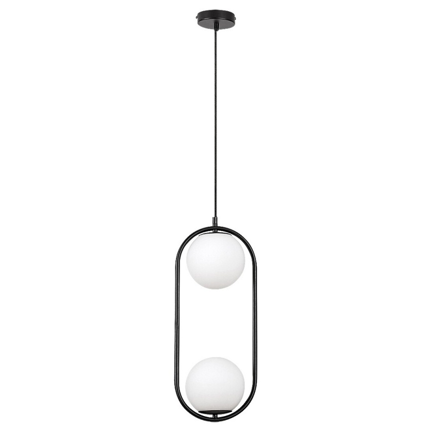 Dvousvětelné závěsné svítidlo Ghita v moderním designu zaujme svým elegantním kontrastem černého kovu a bílého skla. Originální konstrukce tvořená podlouhlým kovovým rámem se zaoblenými konci nese dvě sférická skleněná stínítka – jedno v horní a druhé v dolní části. Kombinace minimalistických tvarů a výrazného materiálového kontrastu dává lampě sofistikovaný vzhled, který skvěle doplní moderní interiéry obývacích pokojů, jídelen nebo ložnic. Svítidlo je zavěšeno na textilním kabelu a upevňuje se ke stropu pomocí kulaté dekorativní základny. Lze jej osadit dvěma žárovkami s paticí E27, každou o výkonu až 20 W (zdroje nejsou součástí balení).