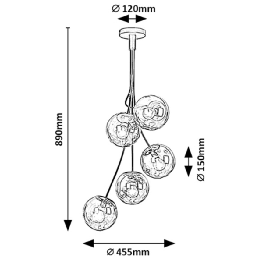 Závěsné svítidlo Rabalux Glory 3508 s pěti žárovkami zaujme moderním designem a luxusním vzhledem připomínajícím svazek elegantních skleněných koulí. Matná černá kovová konstrukce v kombinaci s kouřovými skleněnými stínidly vytváří stylový kontrast, který dodá interiéru jedinečný charakter. Díky pěti paticím E14 poskytuje svítidlo dostatek světla pro obývací pokoj nebo jídelnu. Lze jej kombinovat s teplými i přirozeně bílými žárovkami podle atmosféry, kterou chcete vytvořit. Dodává se bez světelných zdrojů.