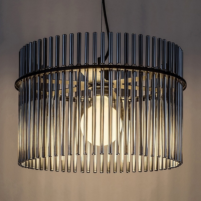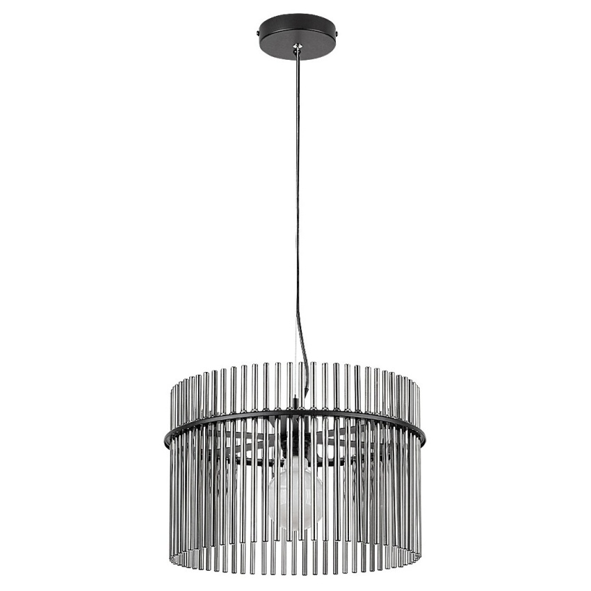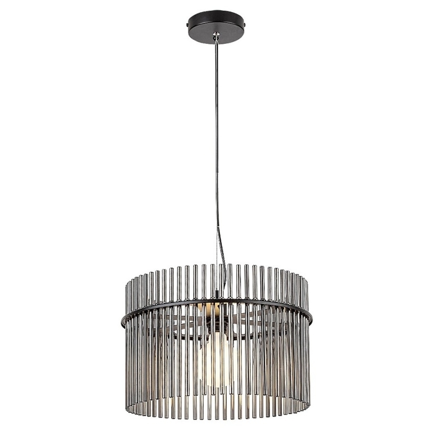 Moderní závěsné svítidlo Rabalux Inesa 72261 zaujme svým elegantním designem a kvalitním zpracováním. Matně černá kovová konstrukce je doplněna kouřovým skleněným stínidlem složeným z tenkých válcovitých prvků, které připomínají trubky varhan. Tyto detaily dodávají lampě luxusní vzhled a zároveň umožňují jemné rozptýlení světla. Inesa se hodí do obývacího pokoje, jídelny nebo ložnice, kde se stane výrazným dekorativním prvkem. Díky otevřené konstrukci stínidla vynikne estetická žárovka s neobvyklým tvarem. Svítidlo je určeno pro jednu žárovku s paticí E27 a maximálním příkonem 40 W (zdroj není součástí balení).