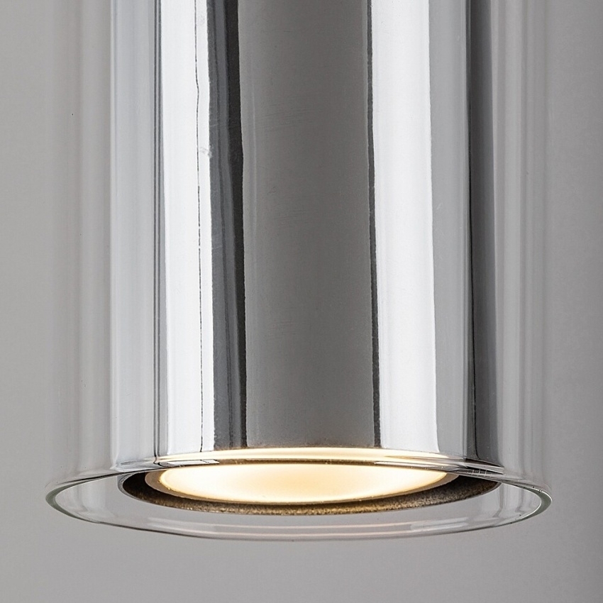Závěsné svítidlo Kalevi zaujme svým elegantním vzhledem a čistým moderním designem. Kovové tělo v chromovém provedení doplňuje průhledné válcové skleněné stínítko, které umožňuje naplno vyniknout světelnému zdroji. Díky otevřené spodní části skla vytváří svítidlo přirozený a rovnoměrný světelný efekt. Stylový textilní kabel dodává lampě na jemné eleganci. Kalevi je ideální pro moderní interiéry, zejména do obývacího pokoje, jídelny nebo nad kuchyňský ostrůvek. Je určeno pro jednu žárovku s paticí GU10 a maximálním příkonem 50 W (zdroj není součástí balení).