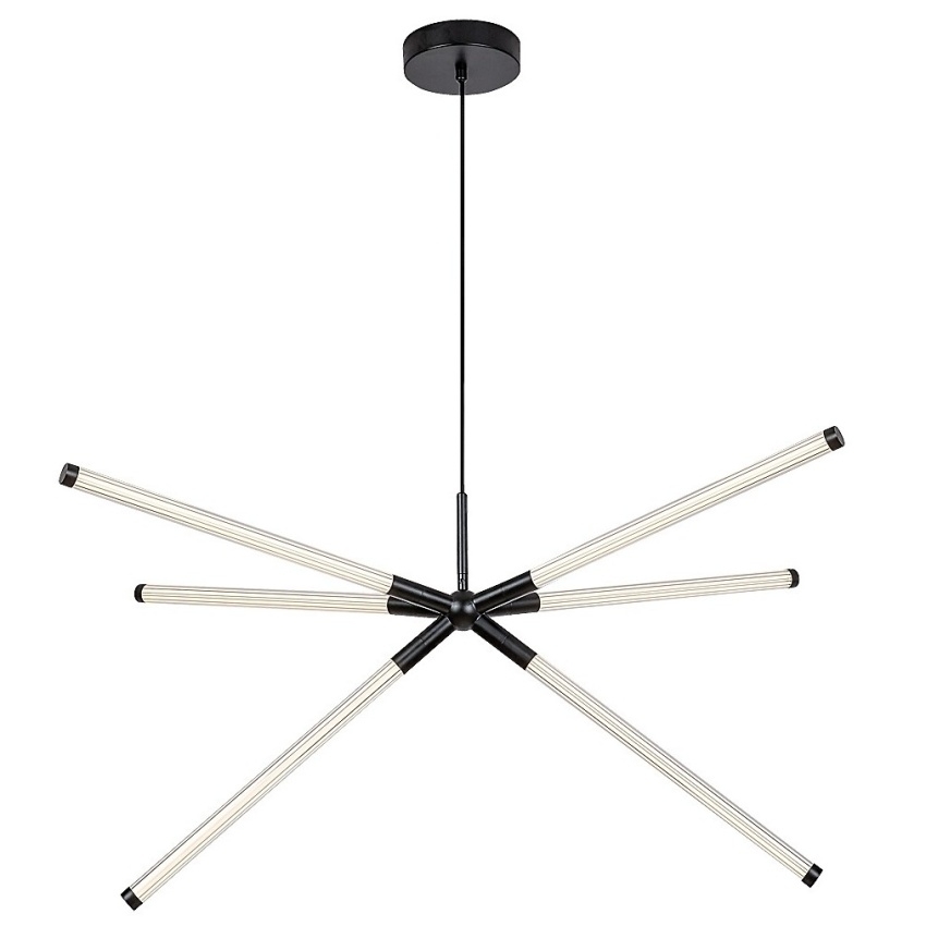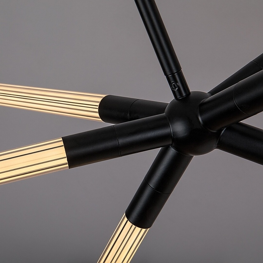 Designové závěsné svítidlo Rabalux Nivaro 72168 zaujme kombinací minimalistického stylu a originálního tvaru připomínajícího hvězdu. Kovová konstrukce v černé barvě doplněná bílými akrylovými trubicemi vytváří moderní a elegantní vzhled, který se skvěle hodí do současných interiérů. Vestavěný LED zdroj s výkonem 36 W poskytuje světelný tok 3150 lm a vyzařuje teplé bílé světlo o teplotě 3000 K, které navozuje příjemnou a útulnou atmosféru. Svítidlo je vhodné do obývacího pokoje, jídelny, kuchyně nebo ložnice, kde dokáže díky svému tvaru a vysoké svítivosti efektivně osvětlit celý prostor. LED technologie zajišťuje úsporný provoz a dlouhou životnost.
