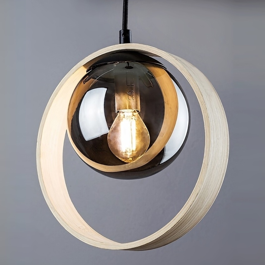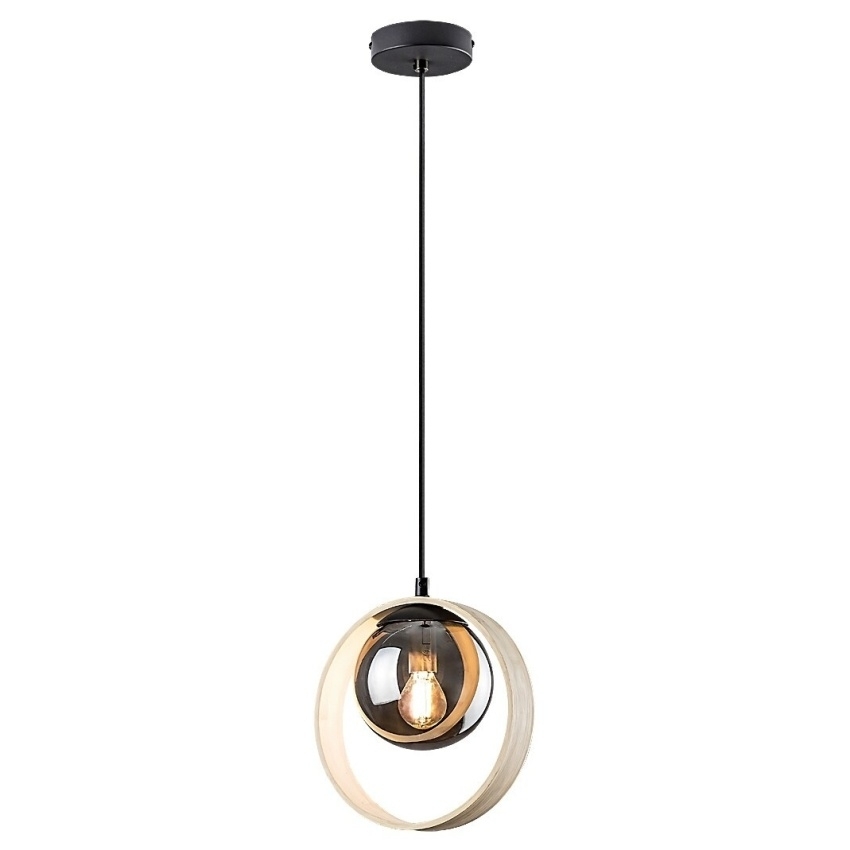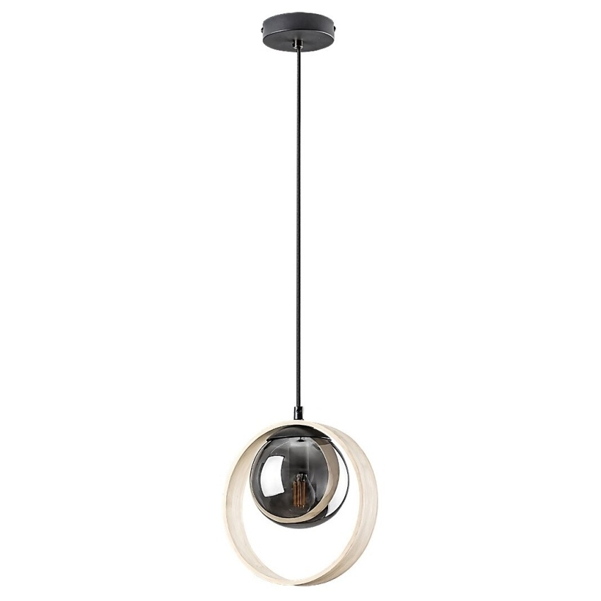 Stylové závěsné svítidlo Peyton v moderním designu kombinuje přírodní dřevo a kouřové sklo do harmonického celku. Koule skleněného stínítka je obklopena větším dřevěným prstencem v barvě buku, který dodává svítidlu osobitý charakter a teplý přírodní nádech. Díky střídmým liniím a příjemným barvám se svítidlo snadno začlení do moderních i skandinávských interiérů. Je ideální do obývacího pokoje, jídelny nebo ložnice, kde vytváří příjemnou a útulnou atmosféru. Lampa je zavěšena na textilním kabelu a určena pro jednu žárovku s paticí E14 a maximálním příkonem 15 W (zdroj není součástí balení).