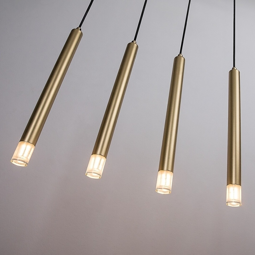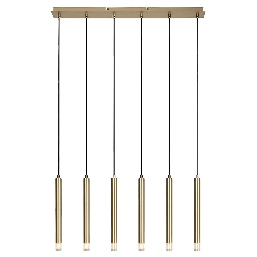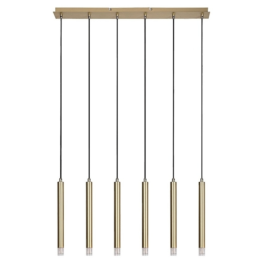 Luxusní závěsné svítidlo Rabalux Ramira 72363 kombinuje moderní minimalistický design s elegantním zlatým provedením. Kovové tělo ve zlaté barvě doplňují průhledná akrylová stínidla, která vytvářejí jemný světelný efekt a působí mimořádně stylově. Šest válcovitých světelných prvků je uspořádáno vedle sebe v jedné linii, což činí svítidlo ideálním pro osvětlení jídelního stolu, kuchyňského ostrůvku nebo obývacího prostoru. Model lze osadit šesti žárovkami s paticí G9 o maximálním výkonu 5 W a dodává se bez světelných zdrojů.