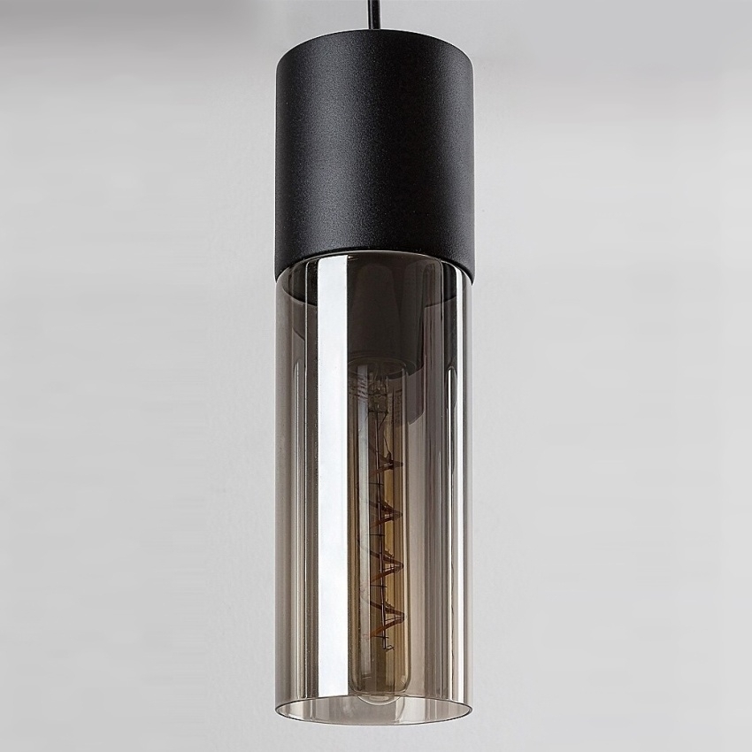 Trojité závěsné svítidlo Ronno v moderním stylu kombinuje elegantní černý kov s kouřově tónovaným sklem a vytváří tak decentní a útulné osvětlení. Tři válcová stínítka z barevného skla jsou zavěšena vedle sebe v jedné linii, čímž svítidlo působí symetricky a harmonicky. Díky svému střídmému designu se skvěle hodí do obývacího pokoje, jídelny nebo nad kuchyňský stůl. Svítidlo je určeno pro tři žárovky s paticí E27 a maximálním příkonem 25 W (zdroje nejsou součástí balení).