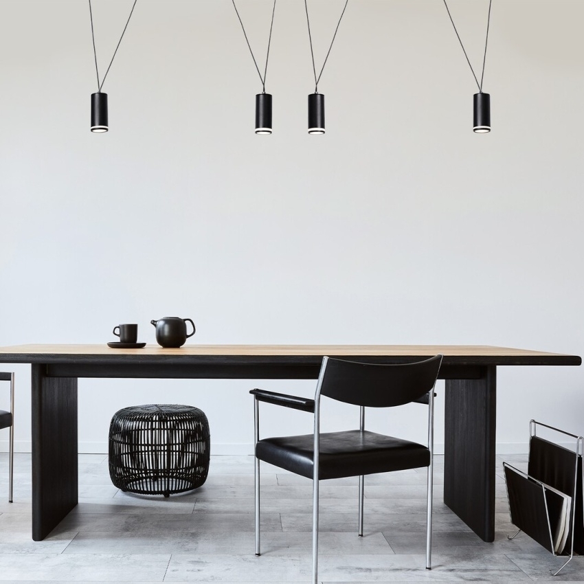 Čtyřité závěsné svítidlo Rabalux Senobia 73038 v moderním stylu je elegantním řešením pro osvětlení prostornějších interiérů. Kombinuje černé hliníkové tělo s bílými akrylovými stínidly, která poskytují příjemně rozptýlené světlo. Model je vybaven nastavitelnou šířkou i výškou, díky čemuž jej lze přizpůsobit různým prostorovým požadavkům – ideální je například nad jídelní stůl či do obývacího pokoje. Svítidlo je určeno pro čtyři žárovky s paticí GU10 a maximálním příkonem 35 W. Dodává se bez světelných zdrojů.