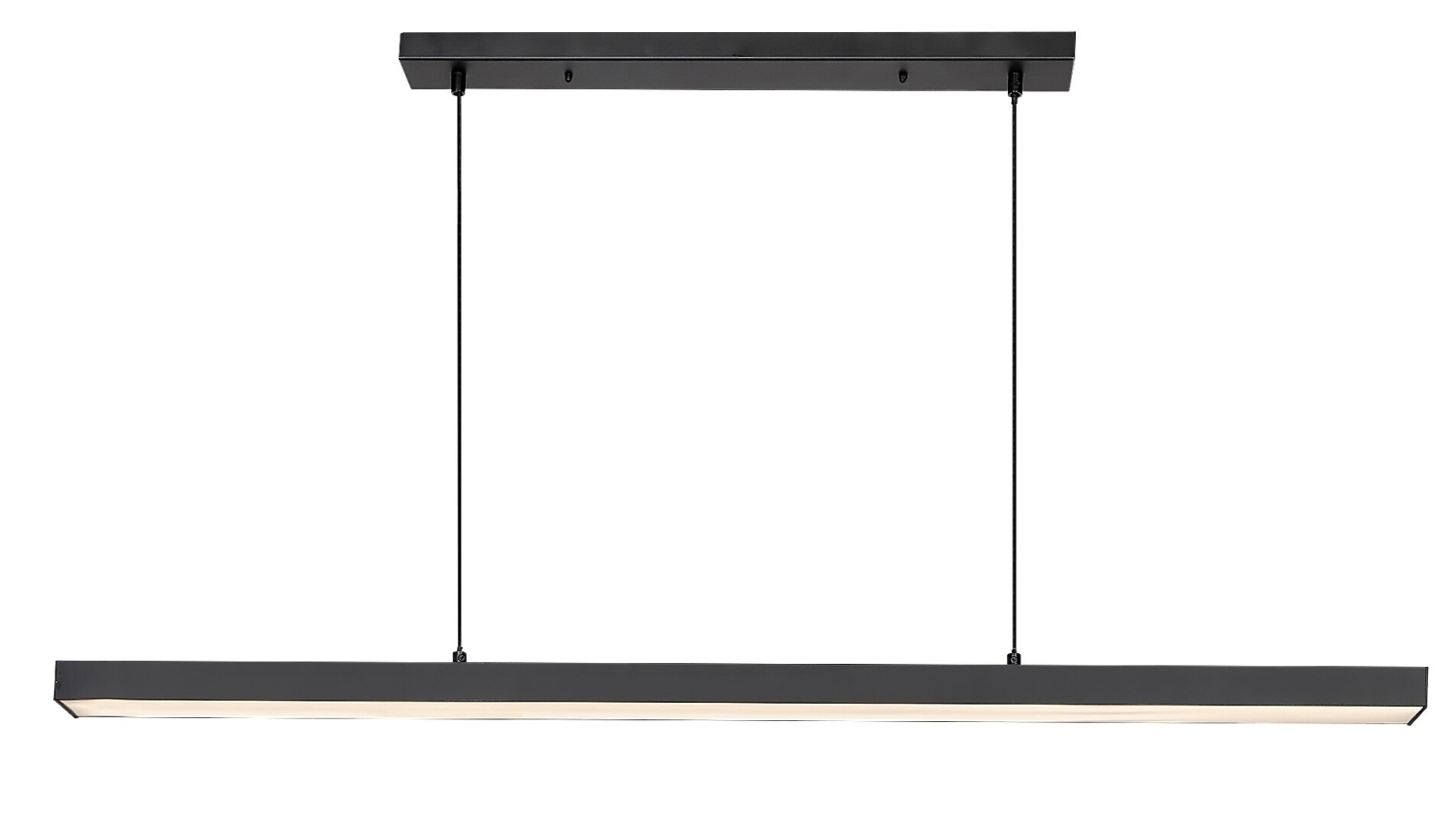 Moderní závěsné svítidlo Rabalux Tariq 72128 je ideální volbou pro kuchyně, kde je potřeba výkonné a rovnoměrné osvětlení. Svítidlo je tvořeno elegantní hliníkovou konstrukcí v matné černé barvě a doplněno bílým akrylovým stínítkem, které zajišťuje příjemné rozptýlení světla. Dlouhá horizontální lišta je zavěšena na dvou ocelových lankách a upevněna k obdélníkovému stropnímu podstavci. Vestavěný LED zdroj s výkonem 30 W poskytuje světelný tok 1650 lm (3000 lm bez stínítka) a teplotu chromatičnosti 4000 K – přirozené bílé světlo vhodné pro práci i vaření. Díky modernímu designu a kvalitním materiálům se svítidlo Tariq skvěle hodí do minimalistických interiérů.