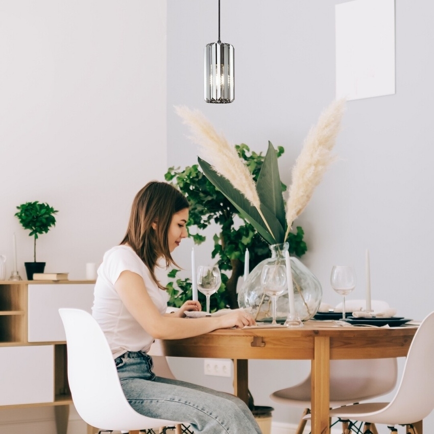 Elegantní závěsné svítidlo Rabalux Veness 72254 představuje moderní pojetí klasického designu. Matně černé kovové tělo doplňuje válcovité kouřové skleněné stínidlo, které zaujme jemným trojúhelníkovým vzorem. Tento dekorativní prvek vytváří při rozsvícení atraktivní světelné efekty a dodává interiéru nádech sofistikovanosti. Svítidlo je ideální do obývacího pokoje, jídelny nebo ložnice, kde podtrhne moderní i klasické vybavení. Lze jej osadit jednou žárovkou s paticí E27 a maximálním příkonem 40 W (zdroj není součástí balení).