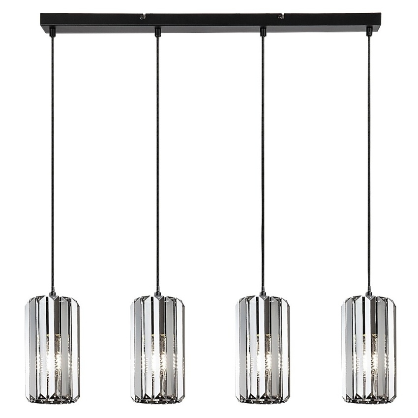 Čtyřité závěsné svítidlo Rabalux Veness 72256 představuje elegantní kombinaci klasického stylu a moderního zpracování. Matně černá kovová konstrukce působí decentně a nadčasově, zatímco válcovitá kouřová skleněná stínidla s trojúhelníkovým vzorem dodávají svítidlu atraktivní vzhled. Čtyři světelné zdroje jsou zavěšeny v jedné linii na obdélníkovém podstavci, což z něj činí ideální osvětlení nad jídelní stůl, bar nebo do větších obytných prostor. Kouřové sklo vytváří jemný světelný efekt a zajišťuje příjemnou atmosféru. Svítidlo je určeno pro čtyři žárovky s paticí E27 a maximálním příkonem 40 W (zdroje nejsou součástí balení).