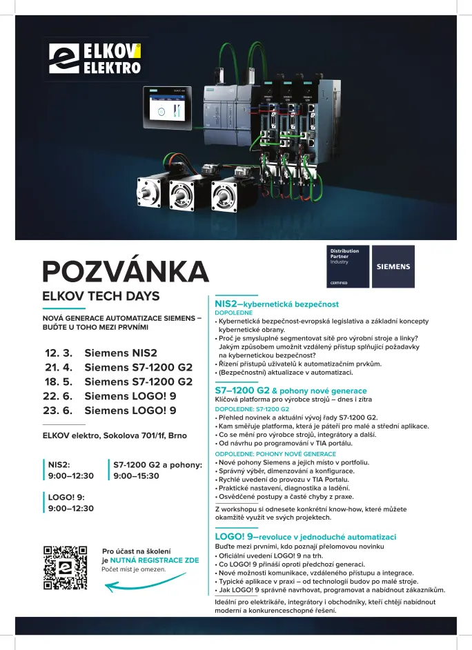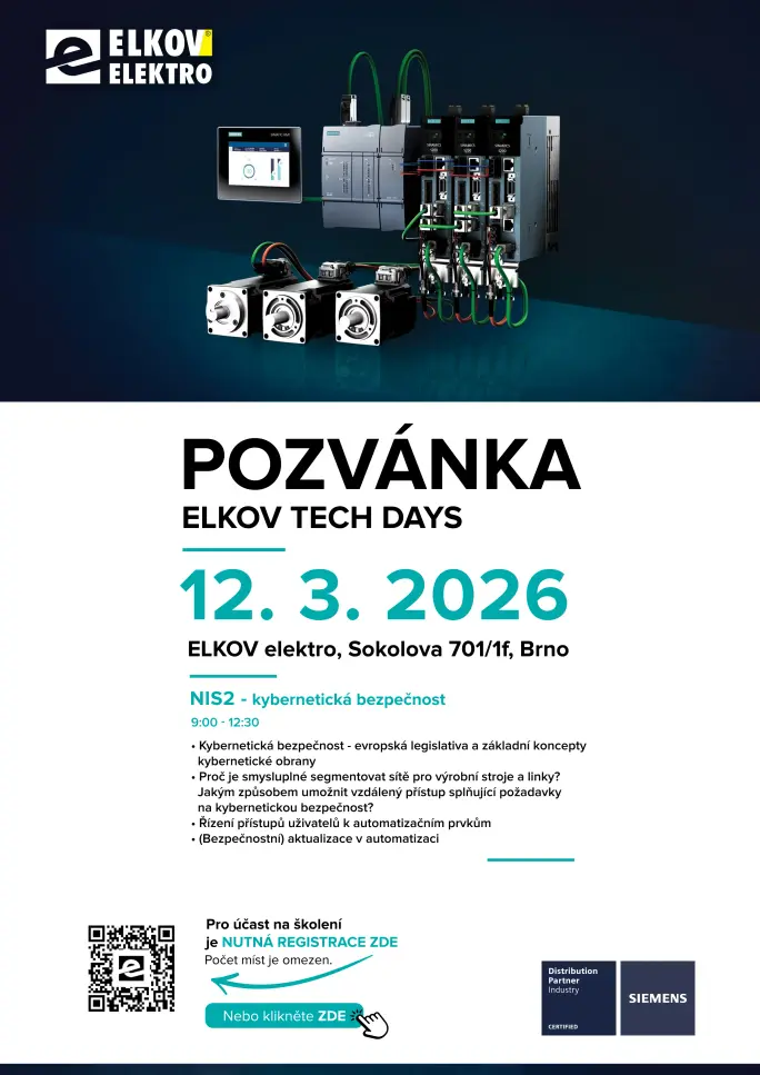 Zveme vás na produktová školení v rámci ELKOV TECH DAY. Pro účast je nutná registrace a počet míst je omezen.